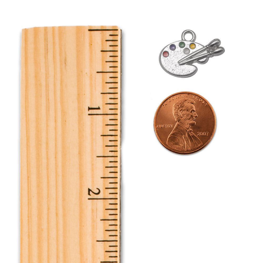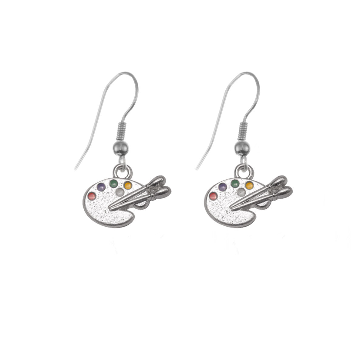 Our sparkling dangle earrings, equipped with a stylish french hook backing and the Artist's Palette charm, is crafted from white metal with a silver plated finish.