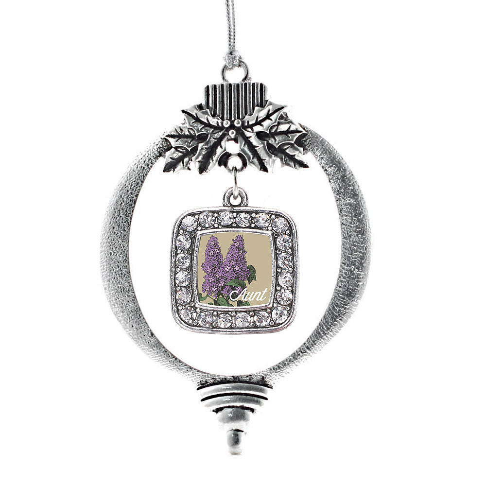 Silver Aunt Lilac Flower Square Charm Holiday Ornament