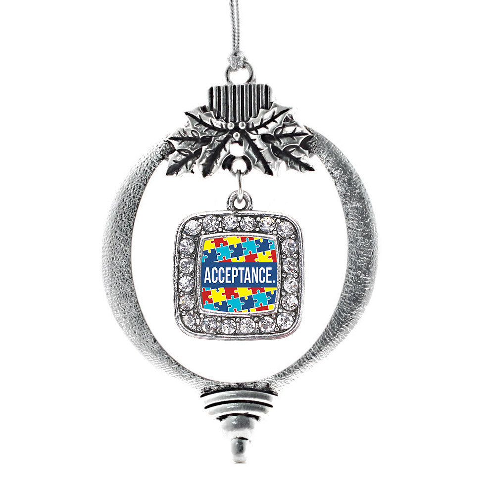 Silver Autism Acceptance Square Charm Holiday Ornament