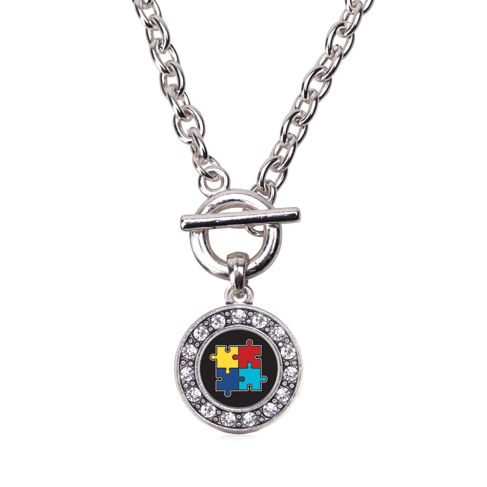 Silver Autism Awareness Jigsaw Circle Charm Toggle Necklace