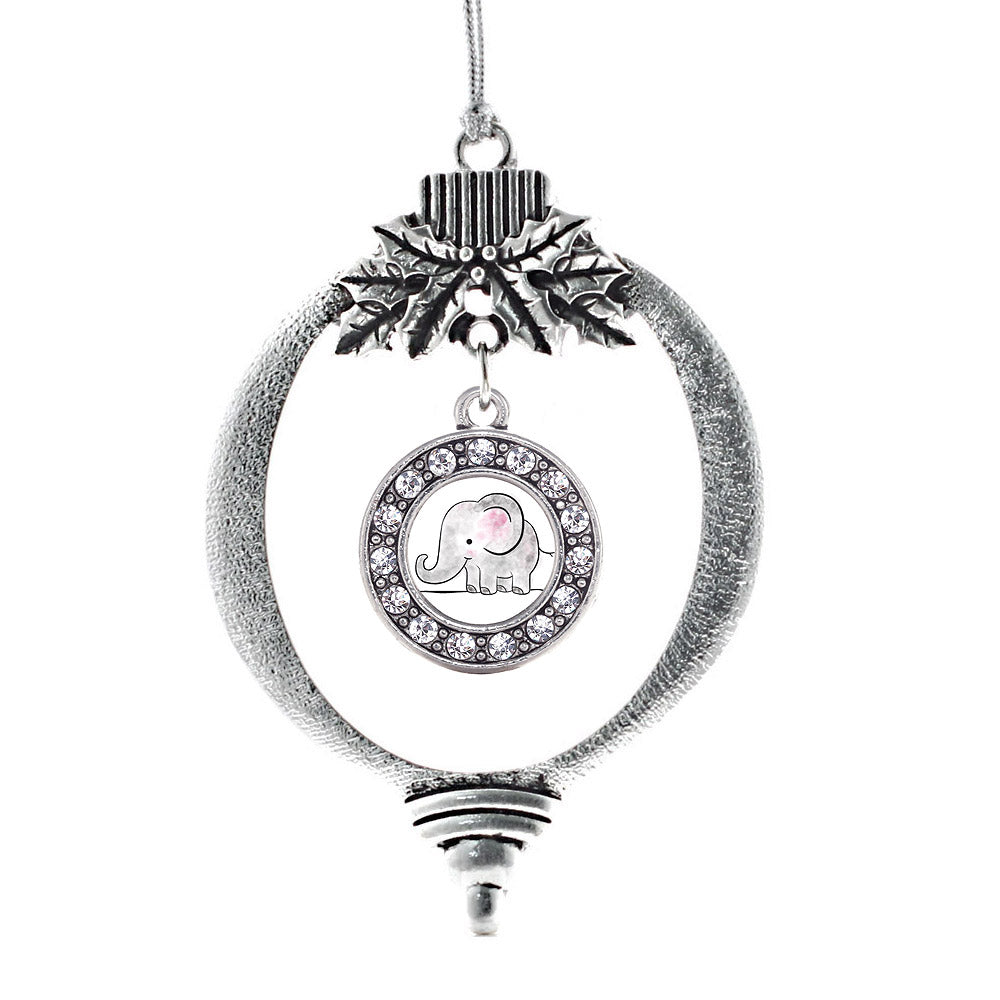Silver Baby Elephant Circle Charm Holiday Ornament