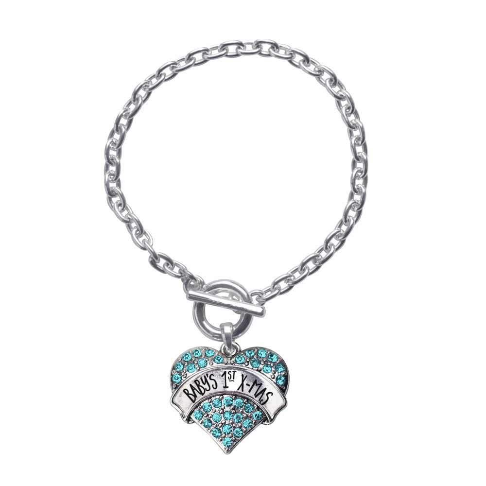 Silver Baby's 1st X-Mas Aqua Aqua Pave Heart Charm Toggle Bracelet