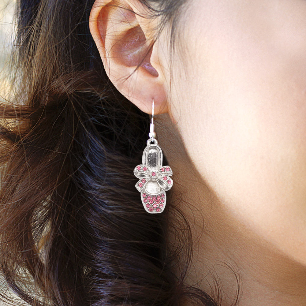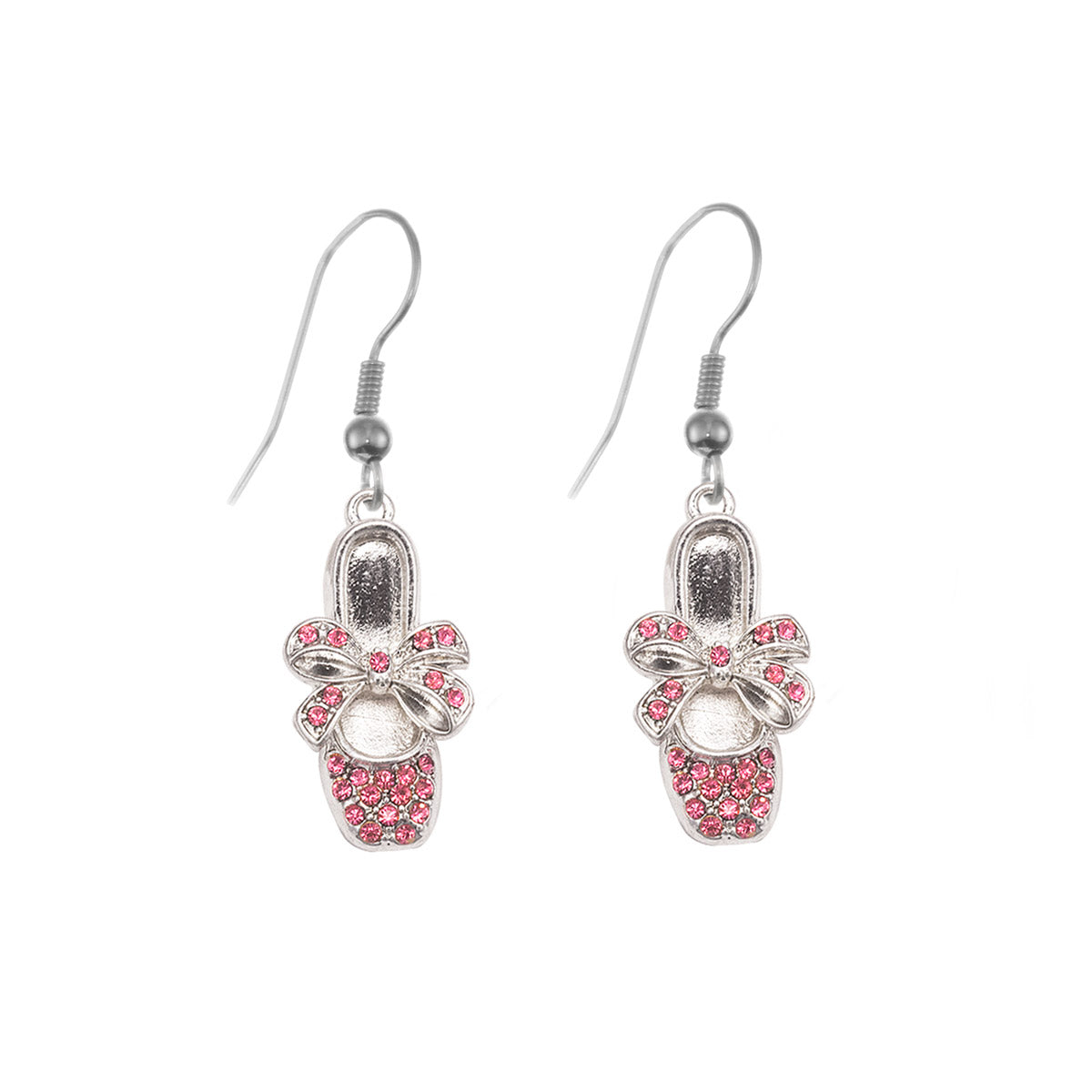 Our sparkling dangle earrings, equipped with a stylish french hook backing and the Ballerina Slipper charm, is crafted from white metal with a silver plated finish.