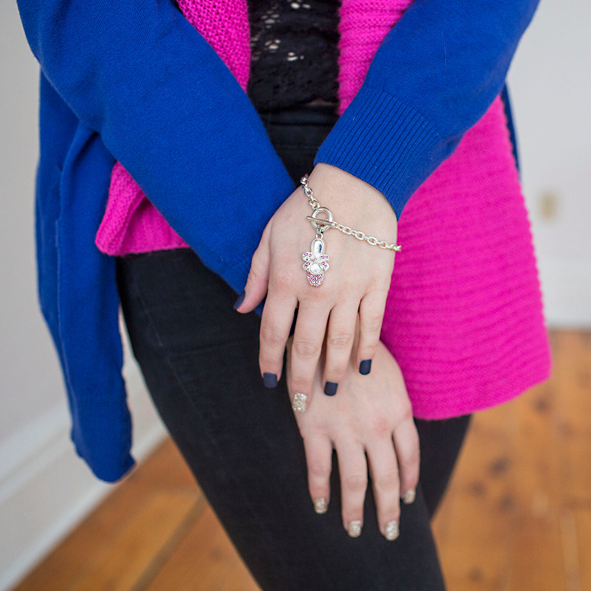 Our sparkling toggle bracelet, equipped with a stylish toggle clasp and the Ballerina Slipper charm, is crafted from white metal with a silver plated finish.