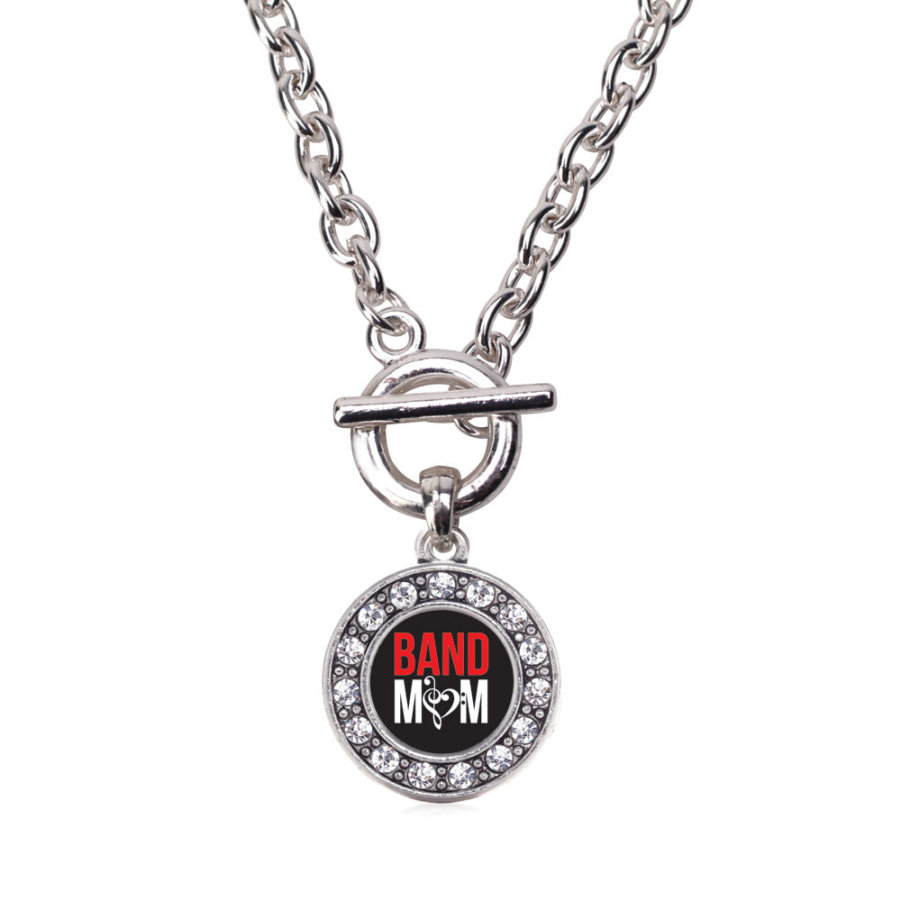 Our sparkling toggle necklace, equipped with a stylish toggle clasp and the Band Mom circle charm, is crafted from white metal with a silver plated finish and accented with cubic zirconia stones.
