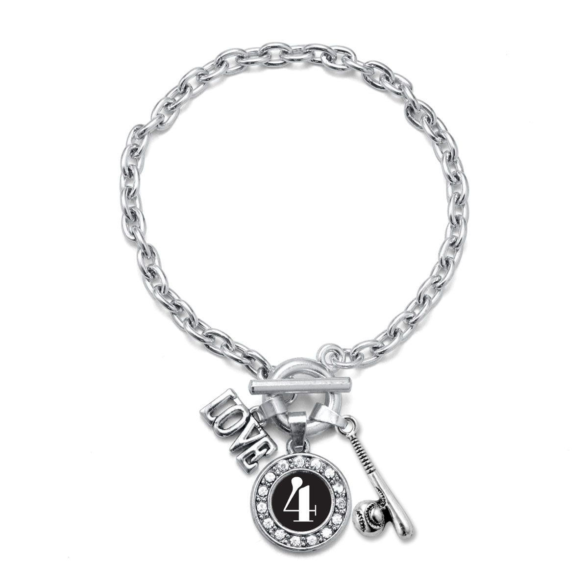 Silver Baseball Bat - Sports Number 4 Circle Charm Toggle Bracelet