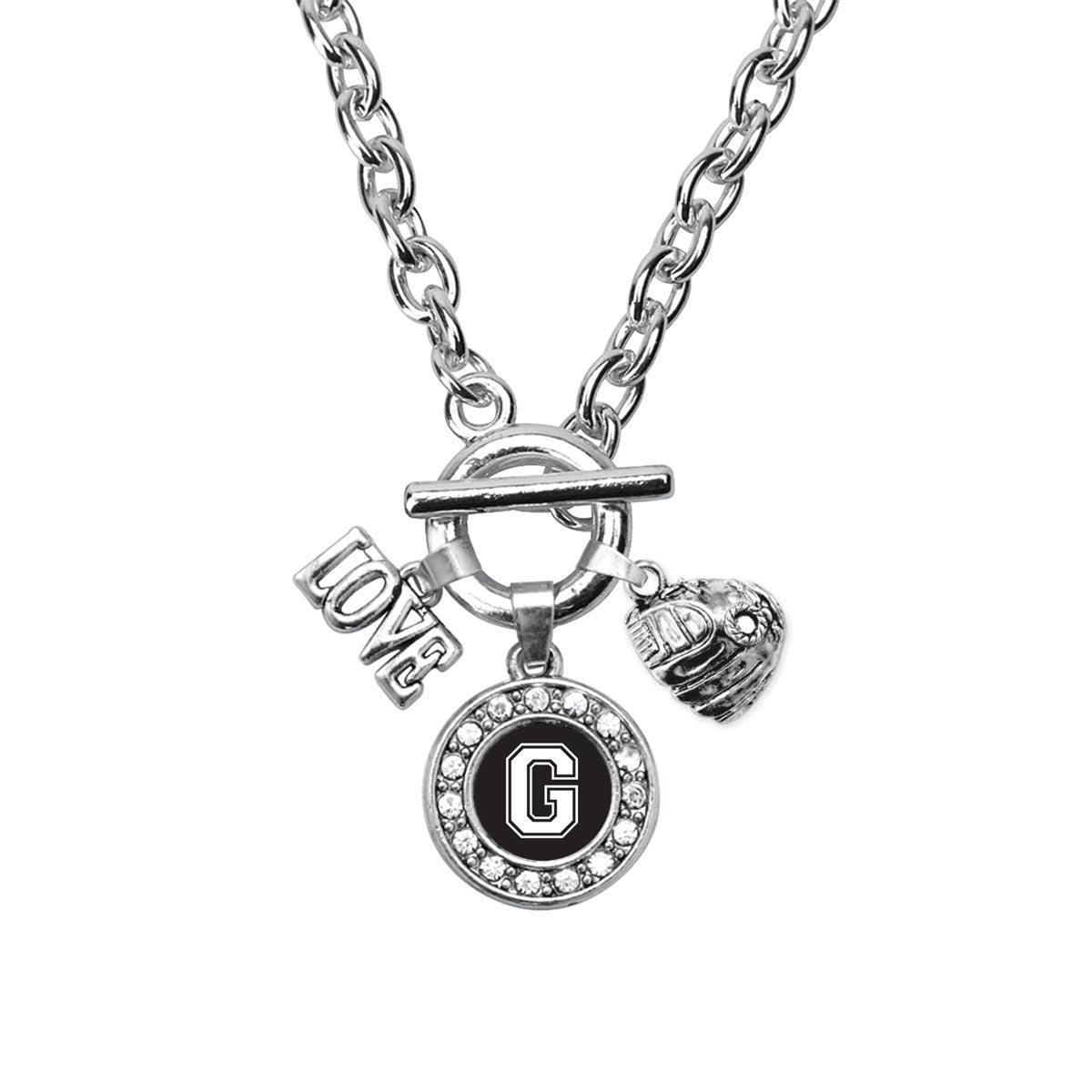 Our sparkling toggle necklace, equipped with a stylish toggle clasp and the Baseball Glove - Sports Initial G circle charm, is crafted from white metal with a silver plated finish and accented with cubic zirconia stones.