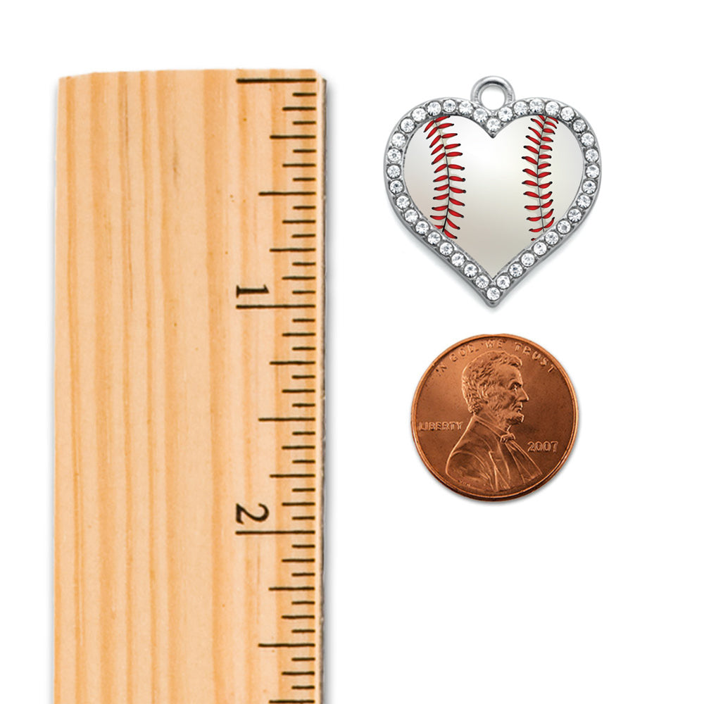 Our sparkling toggle necklace, equipped with a stylish toggle clasp and the Baseball open heart charm, is crafted from white metal with a silver plated finish and accented with cubic zirconia stones.