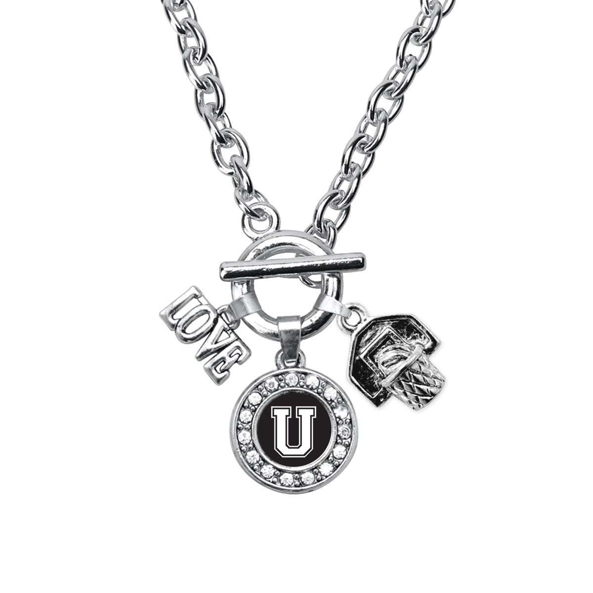 Silver Basketball Hoop - Sports Initial U Circle Charm Toggle Necklace