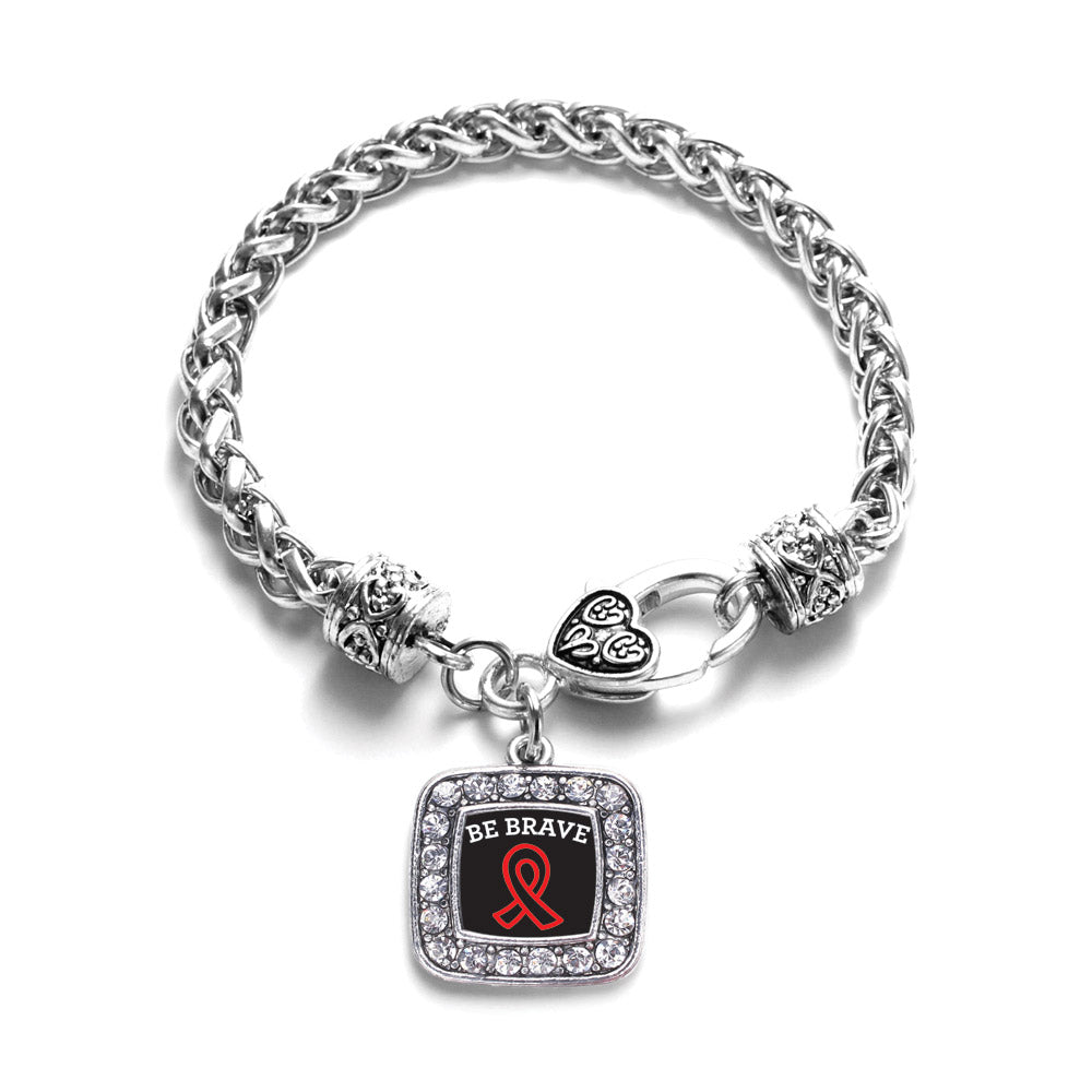 Silver Be Brave Heart Disease Awareness Square Charm Braided Bracelet