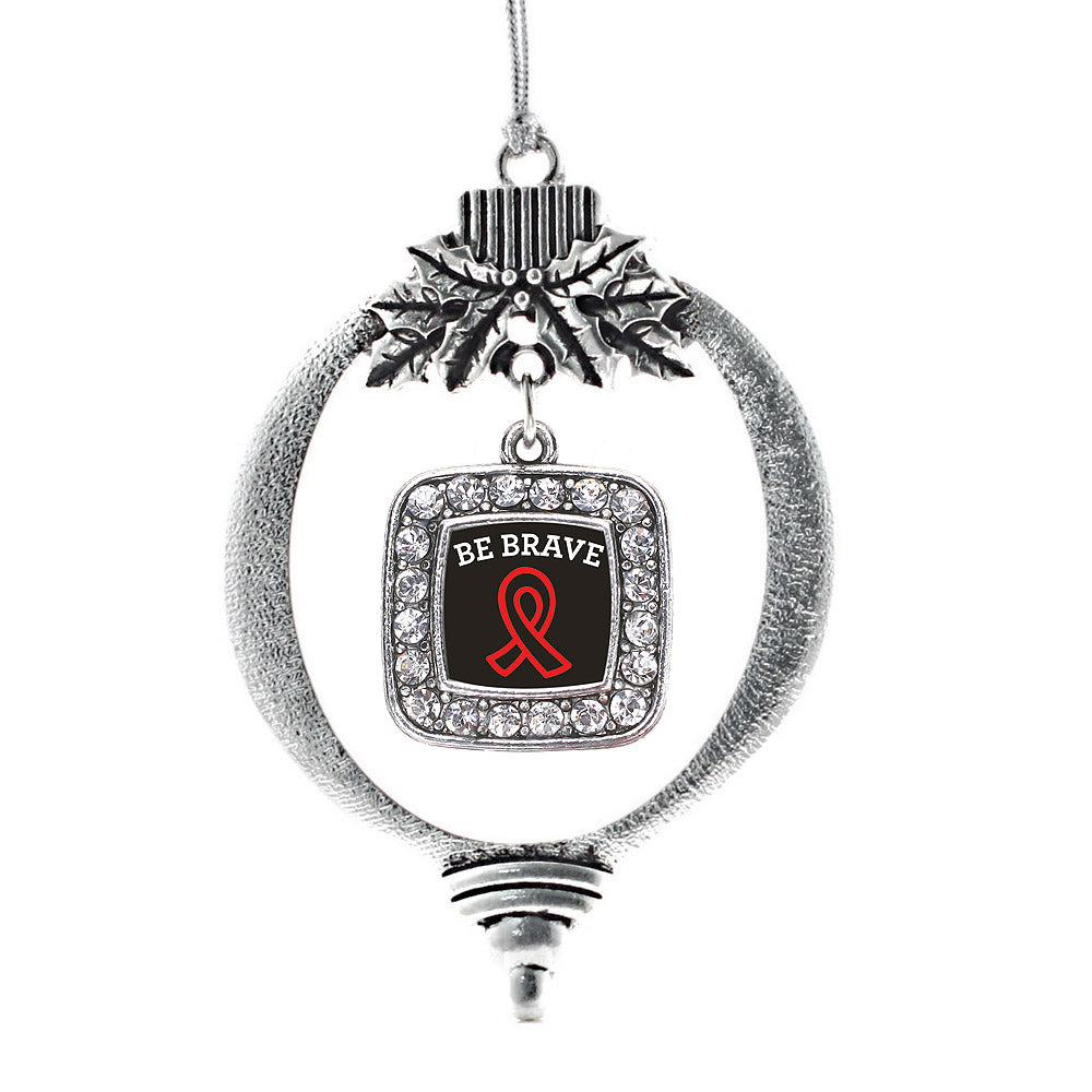 Silver Be Brave Heart Disease Awareness Square Charm Holiday Ornament