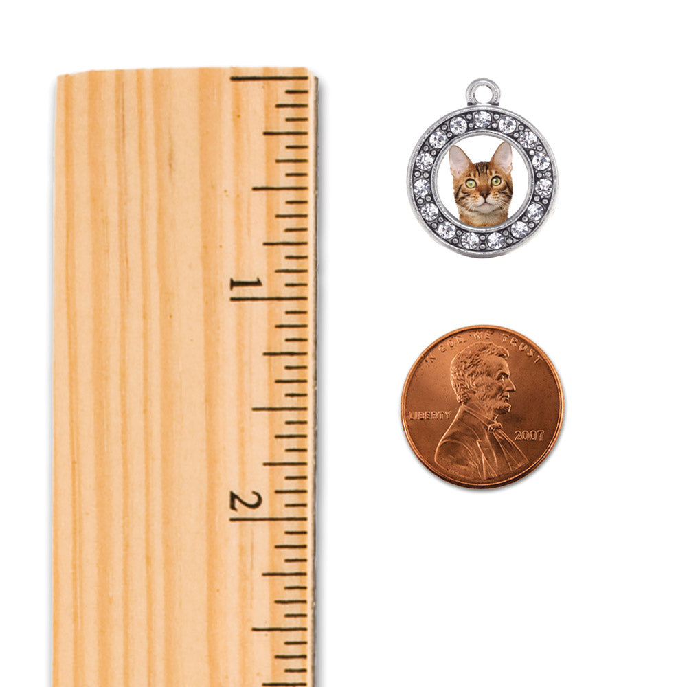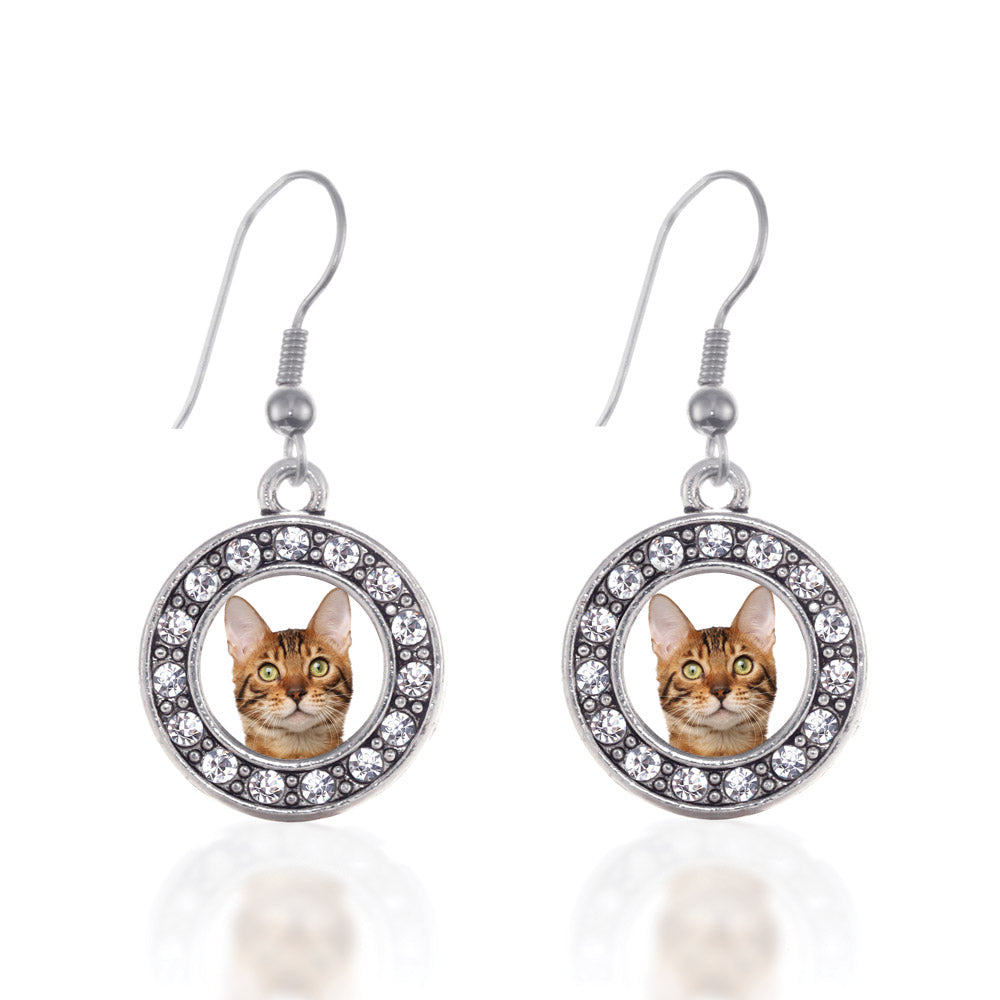 Silver Bengal Cat Circle Charm Dangle Earrings