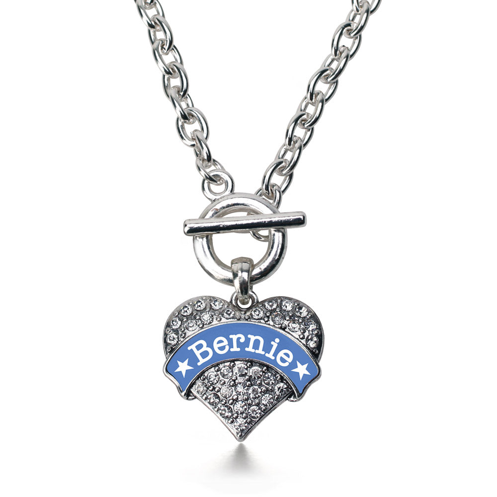 Silver Bernie Supporter Pave Heart Charm Toggle Necklace