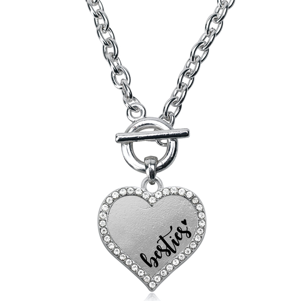 Our sparkling toggle necklace, equipped with a stylish toggle clasp and the Besties - Clear open heart charm, is crafted from white metal with a silver plated finish and accented with cubic zirconia stones.