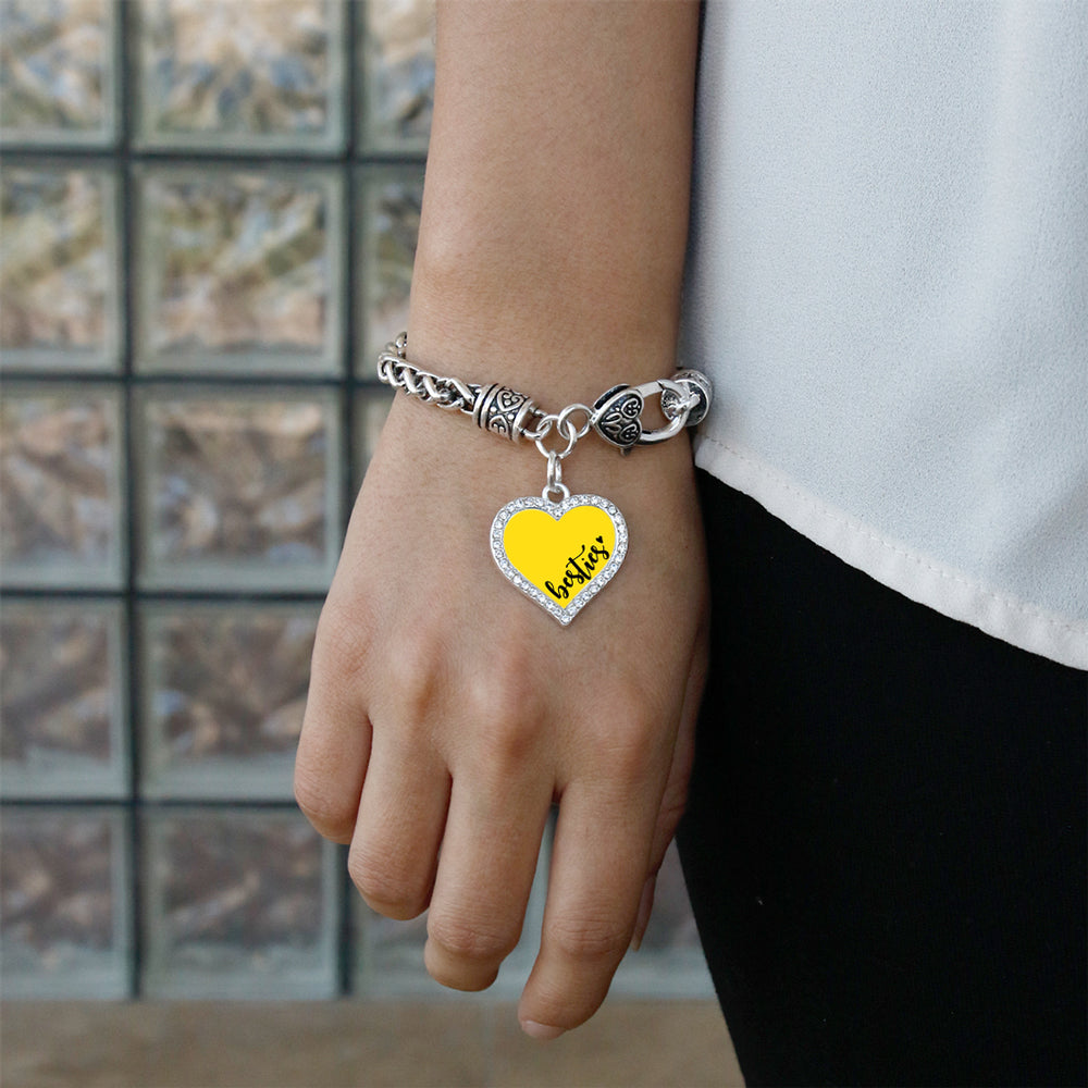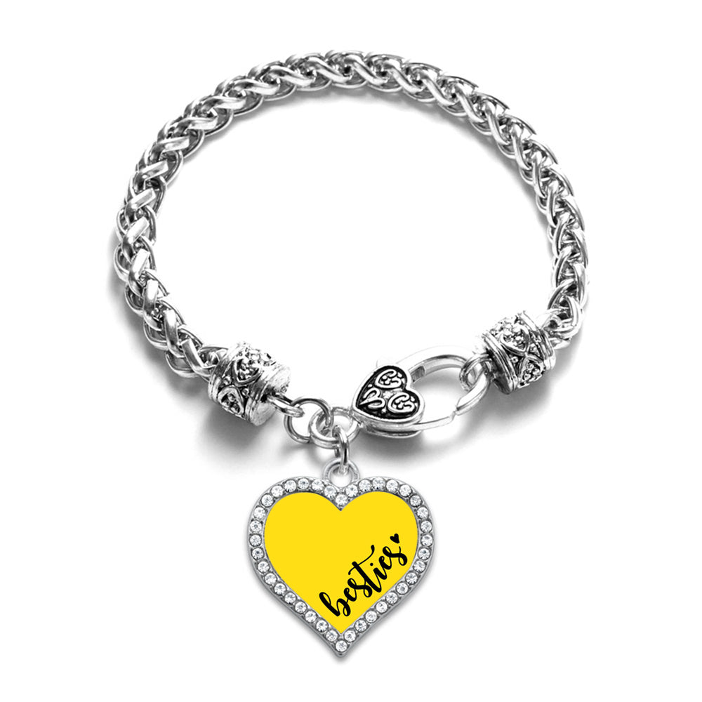 Our sparkling braided bracelet, equipped with a stylish lobster claw clasp and the Besties - Yellow open heart charm, is crafted from white metal with a silver plated finish and accented with cubic zirconia stones.