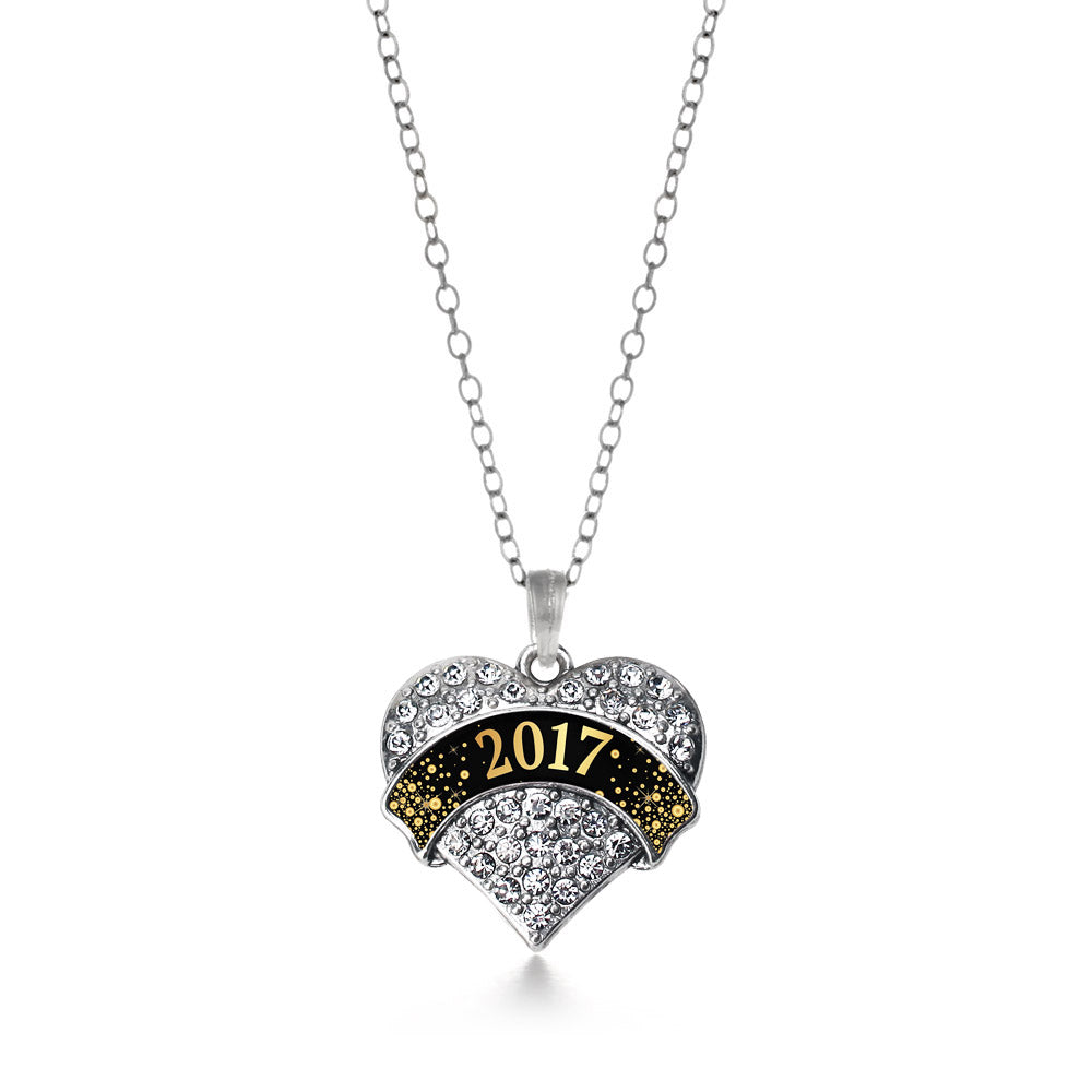 Our sparkling classic necklace, equipped with a stylish lobster claw clasp and the Black and Gold 2017 pave heart charm, is crafted from white metal with a silver plated finish and accented with cubic zirconia stones.