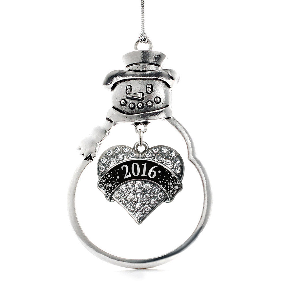Silver Black and Silver 2016 Pave Heart Charm Snowman Ornament