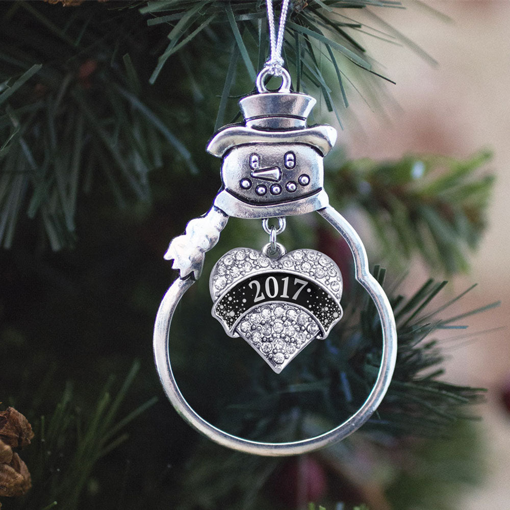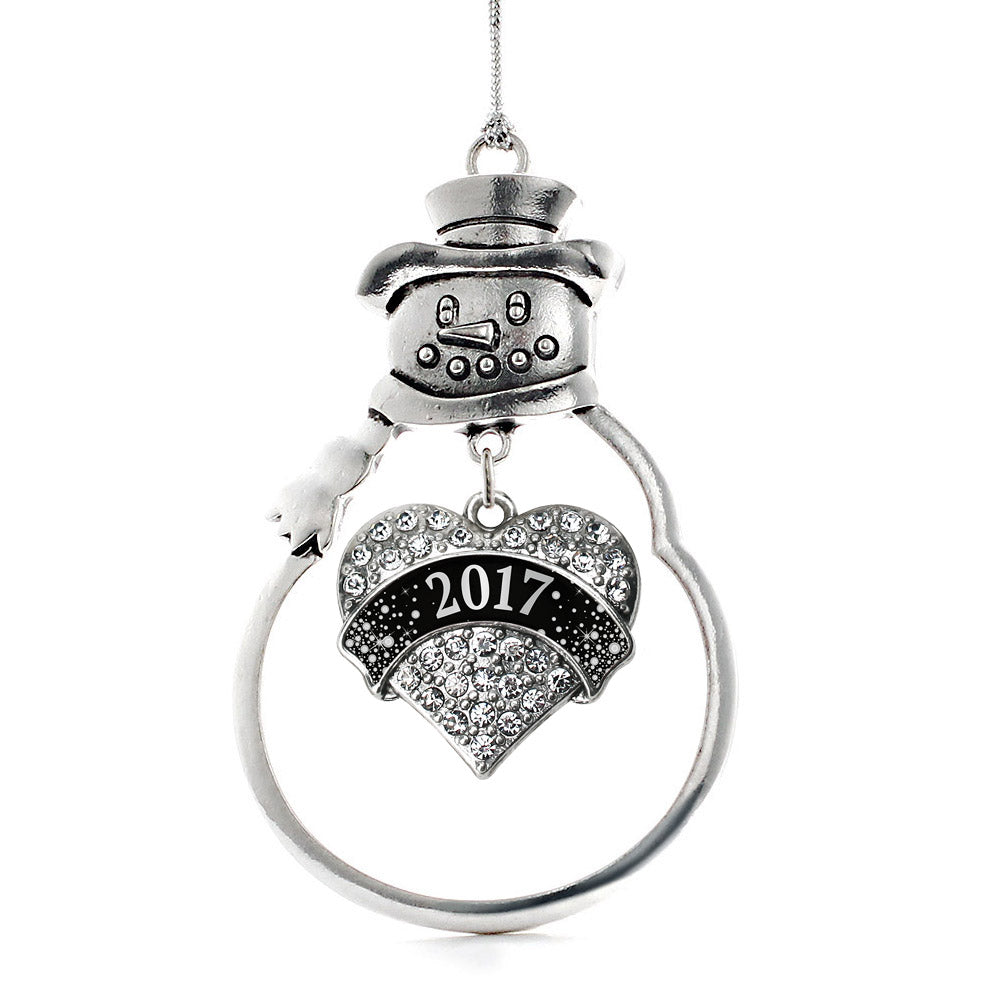 Silver Black and Silver 2017 Pave Heart Charm Snowman Ornament
