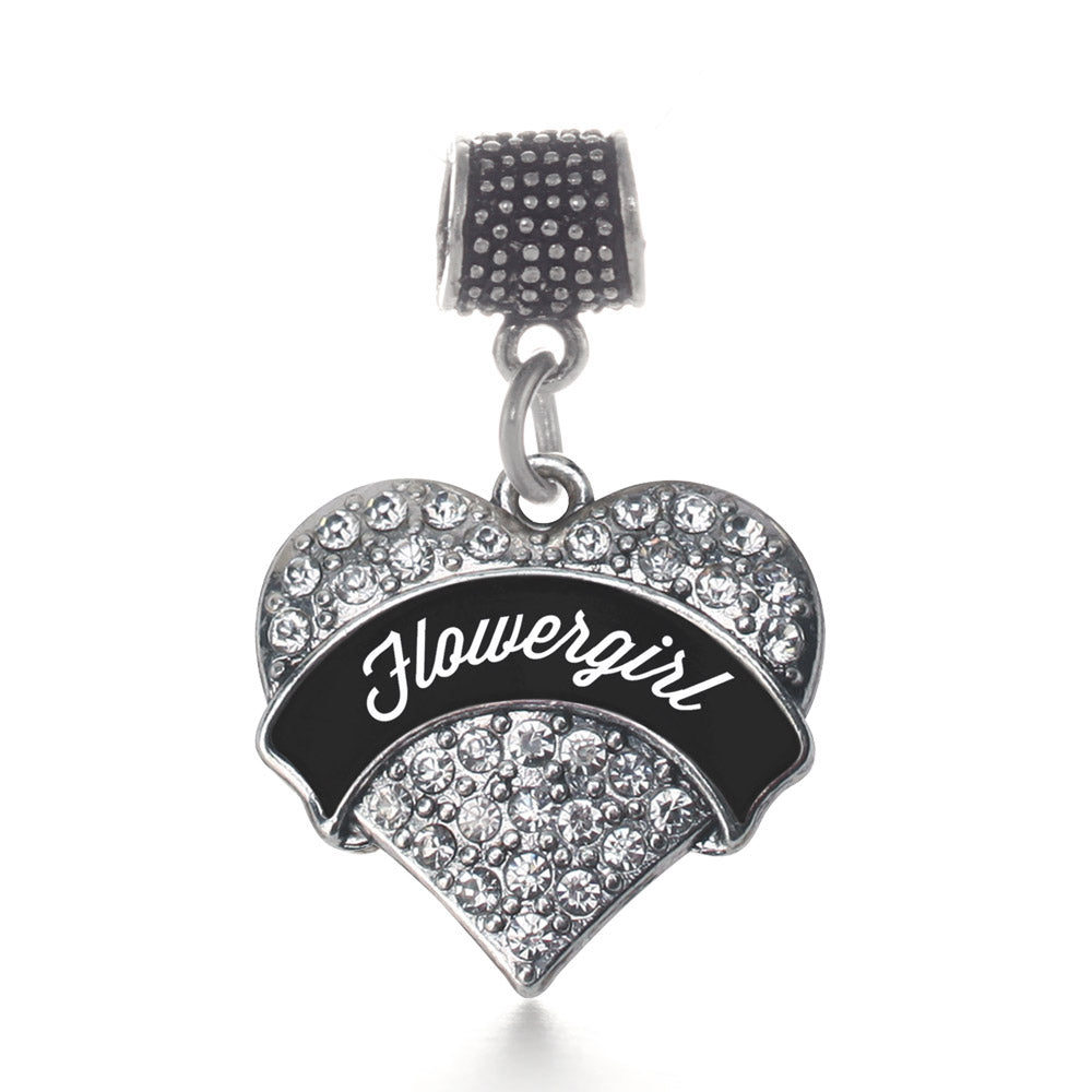 Our sparkling memory charm, equipped with a stylish charm attachment ring and the Black and White Flower Girl pave heart charm, is crafted from white metal with a silver plated finish and accented with cubic zirconia stones.