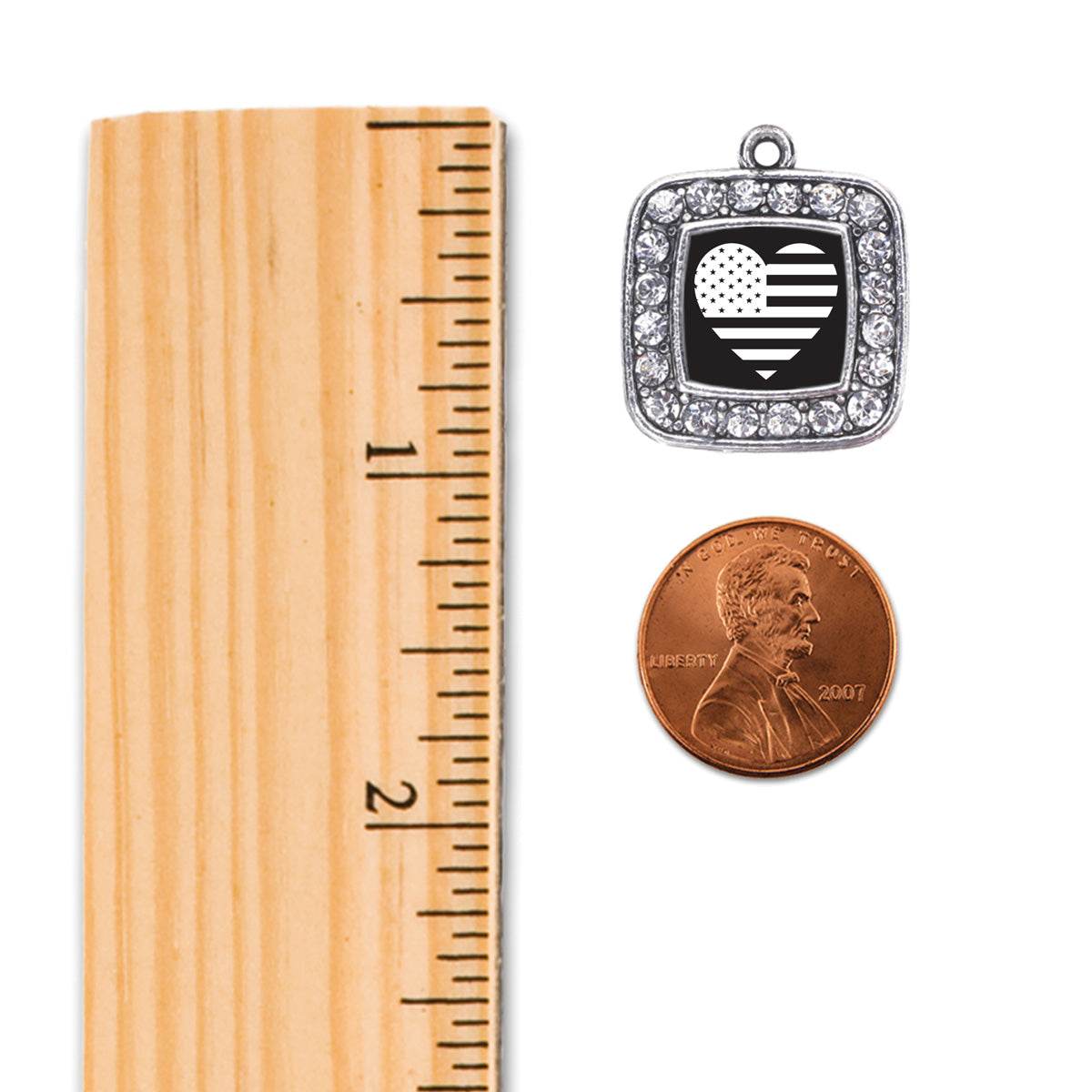 Silver Black and White USA Flag Heart Square Charm Toggle Bracelet