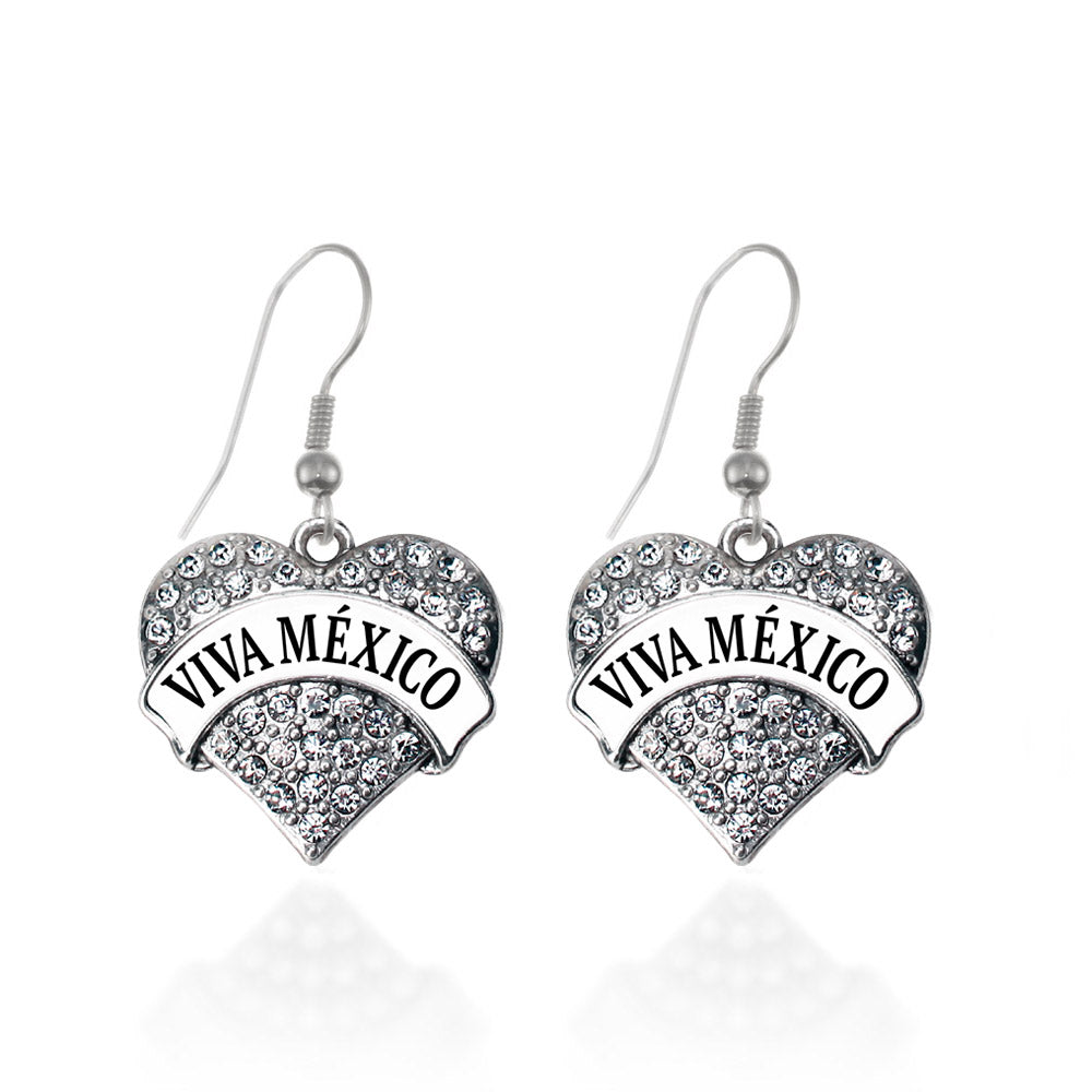Our sparkling dangle earrings, equipped with a stylish french hook backing and the Black and White Viva México pave heart charm, is crafted from white metal with a silver plated finish and accented with cubic zirconia stones.