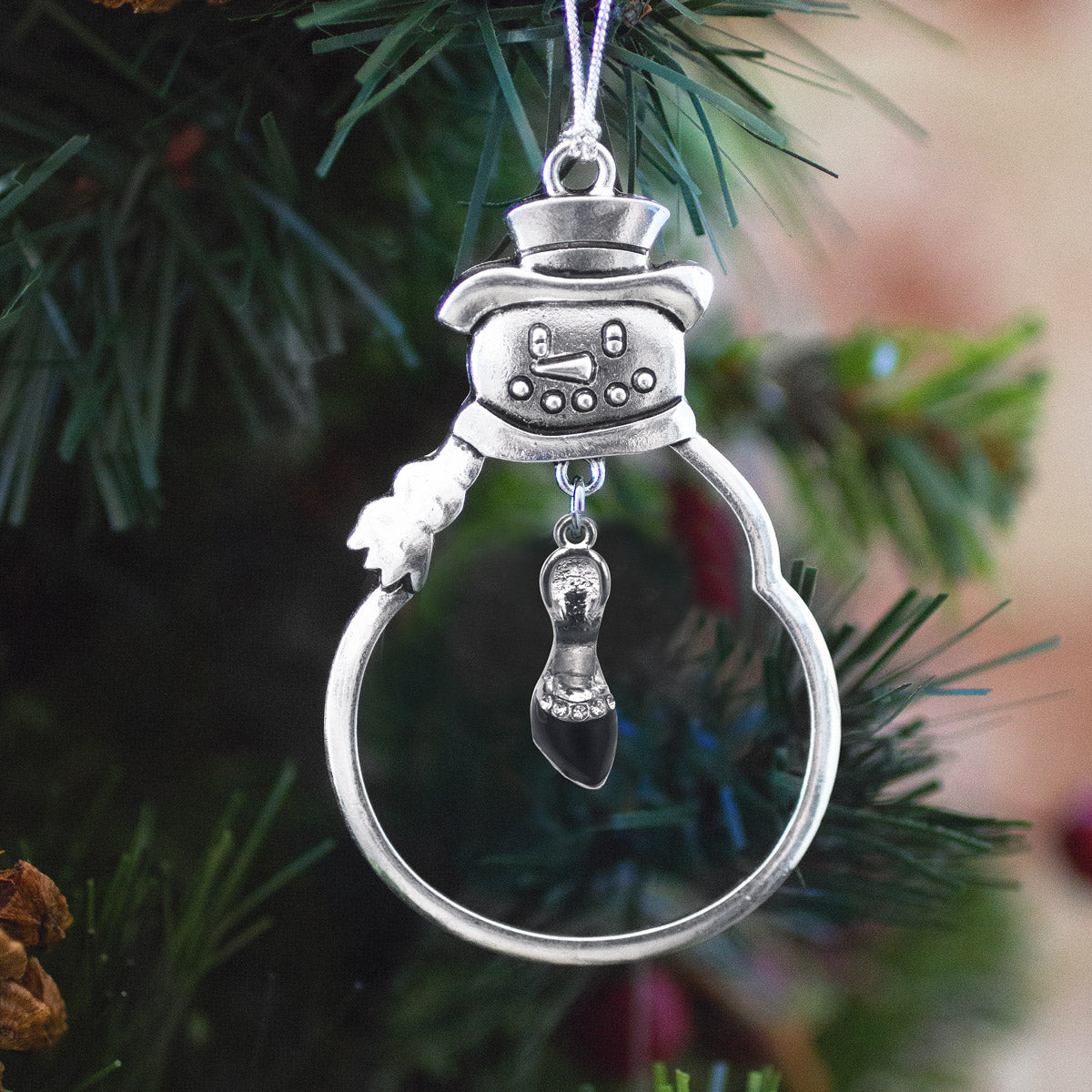 Our sparkling snowman ornament, equipped with a stylish silver rope and the Black Heel Shoe charm, is crafted from white metal with a silver plated finish.