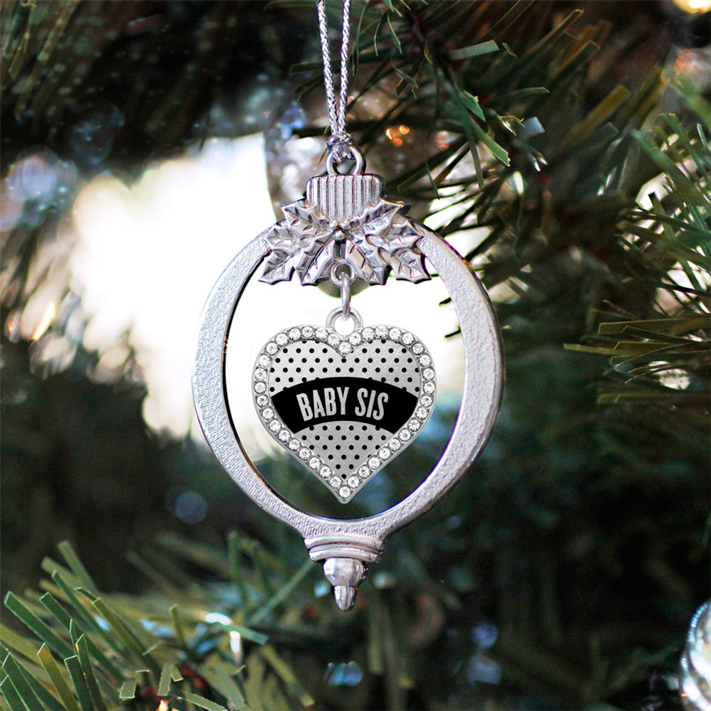 Silver Black Polka Dot Baby Sis Open Heart Charm Holiday Ornament