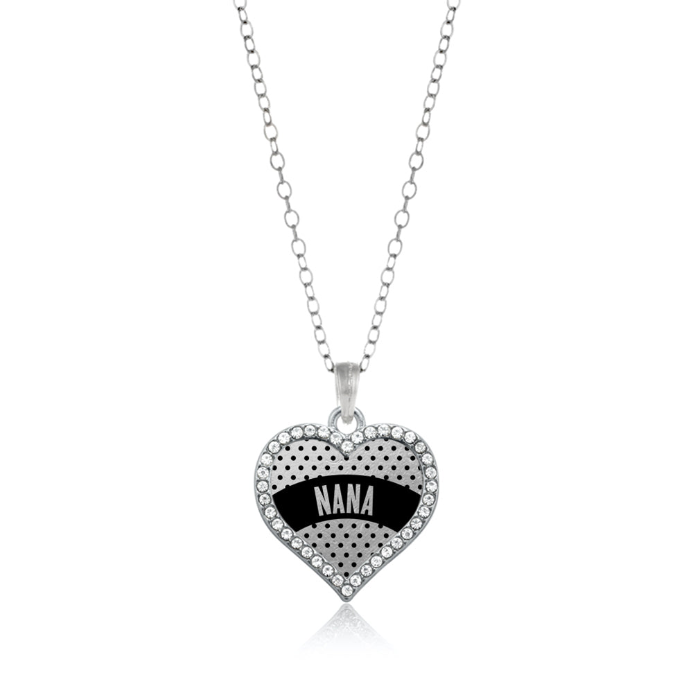 Our sparkling classic necklace, equipped with a stylish lobster claw clasp and the Black Polka Dot Nana open heart charm, is crafted from white metal with a silver plated finish and accented with cubic zirconia stones.