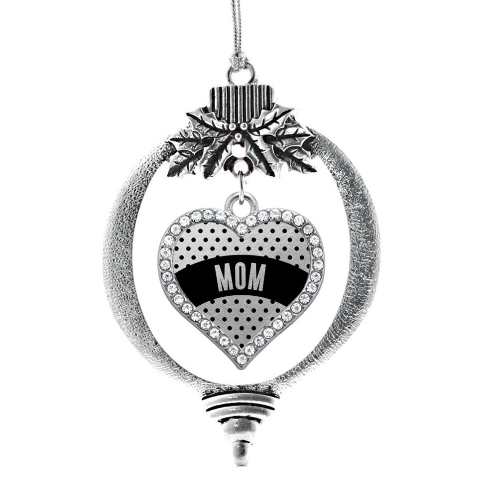 Silver Black Polka Mom Open Heart Charm Holiday Ornament