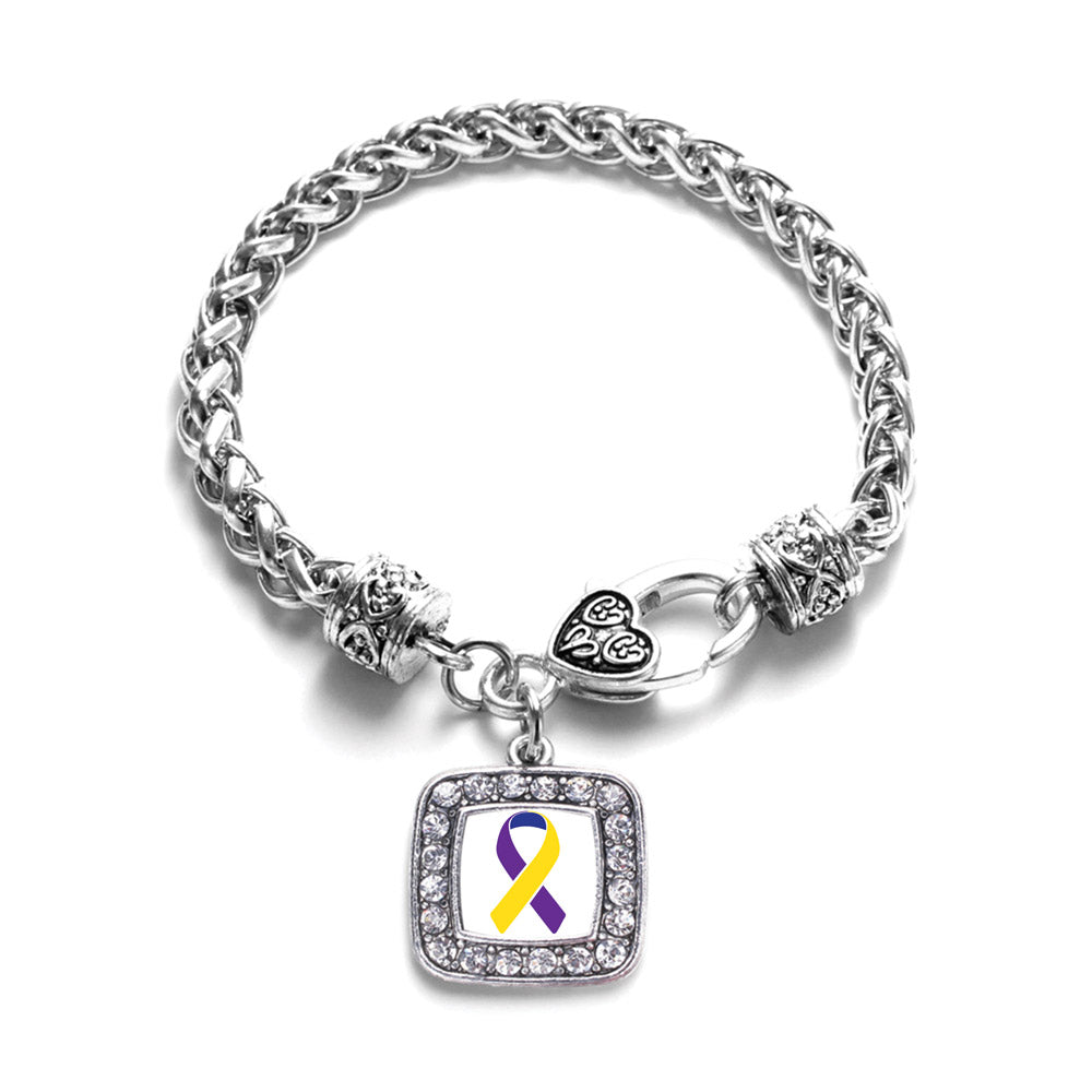 Our sparkling braided bracelet, equipped with a stylish lobster claw clasp and the Bladder Cancer Awareness square charm, is crafted from white metal with a silver plated finish and accented with cubic zirconia stones.