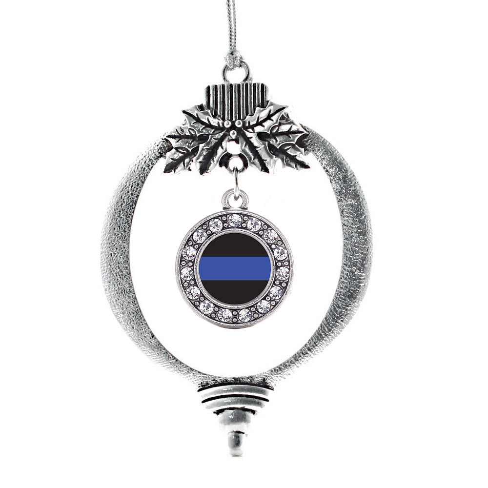 Our sparkling holiday ornament, equipped with a stylish silver rope and the Blue Line Law Enforcement Support circle charm, is crafted from white metal with a silver plated finish and accented with cubic zirconia stones.