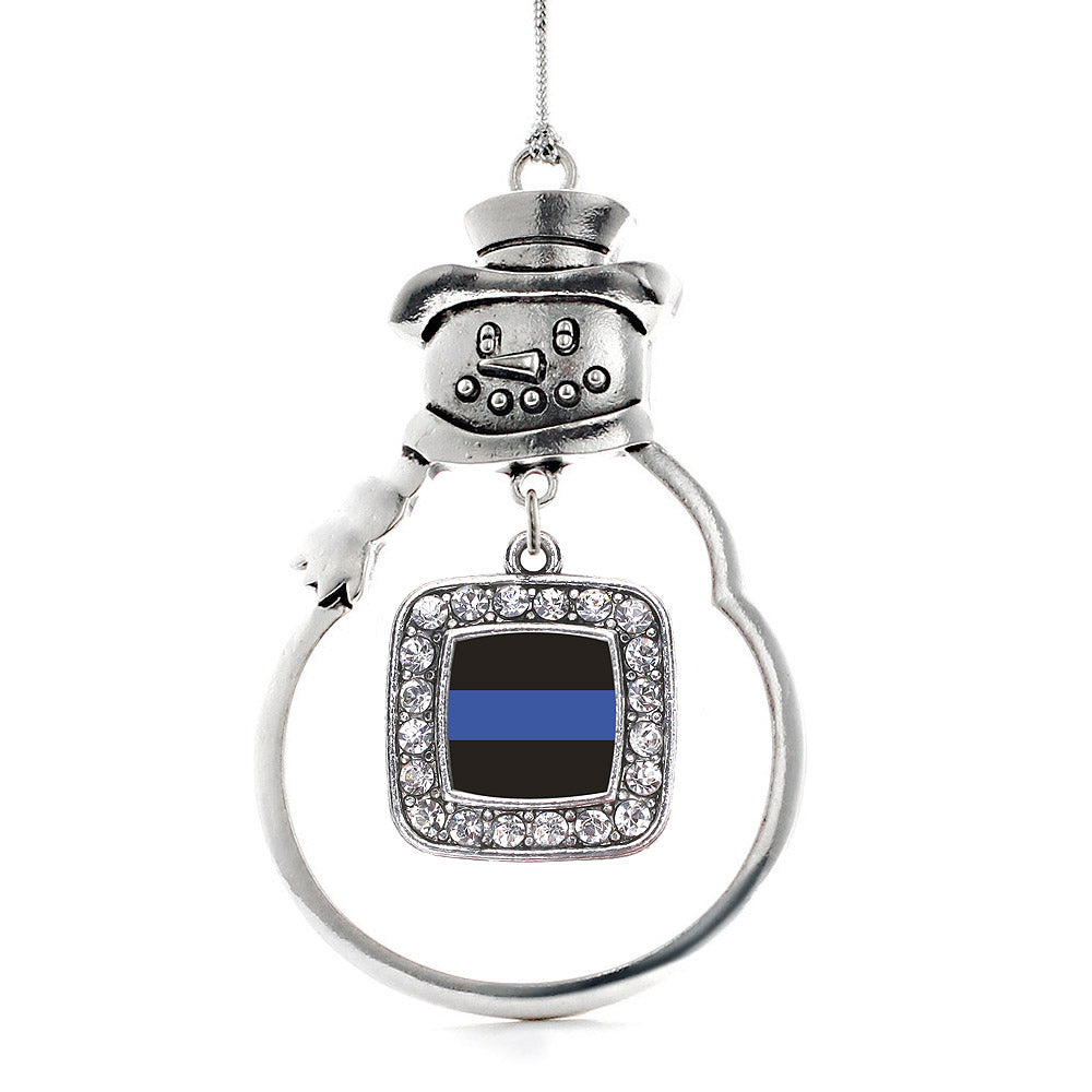 Silver Blue Line Law Enforcement Support Square Charm Snowman Ornament