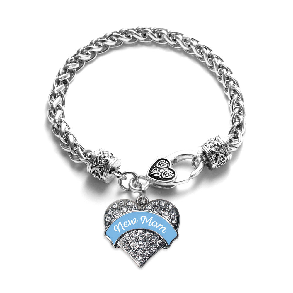 Our sparkling braided bracelet, equipped with a stylish lobster claw clasp and the Blue New Mom pave heart charm, is crafted from white metal with a silver plated finish and accented with cubic zirconia stones.
