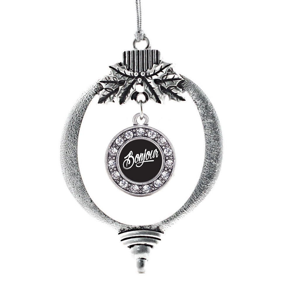Silver Bonjour Circle Charm Holiday Ornament
