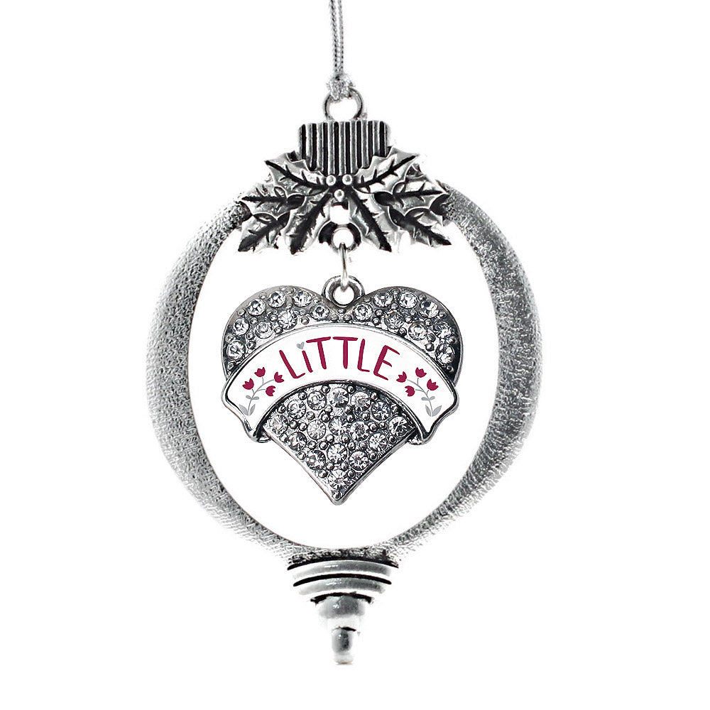 Our sparkling holiday ornament, equipped with a stylish silver rope and the Bordeaux and Grey Little pave heart charm, is crafted from white metal with a silver plated finish and accented with cubic zirconia stones.