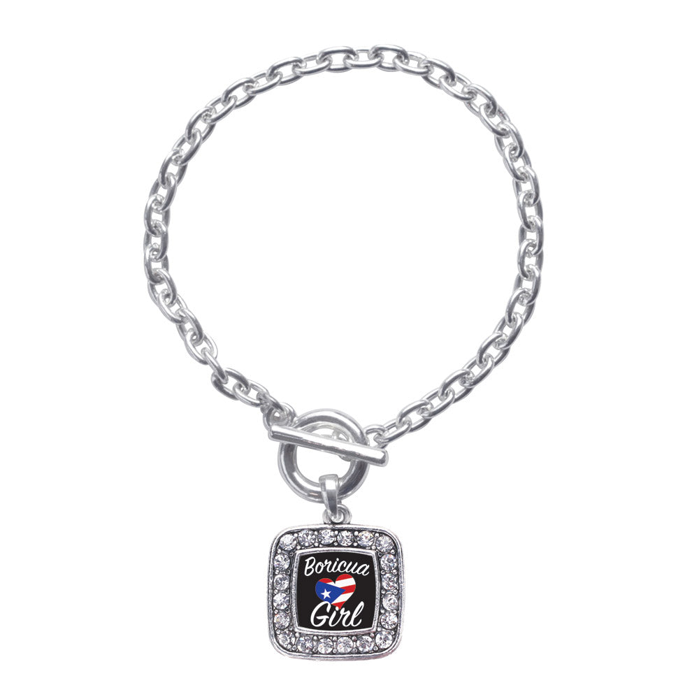 Silver Boricua Girl Square Charm Toggle Bracelet