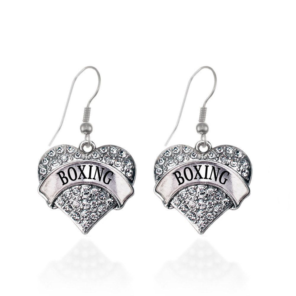 Silver Boxing Pave Heart Charm Dangle Earrings