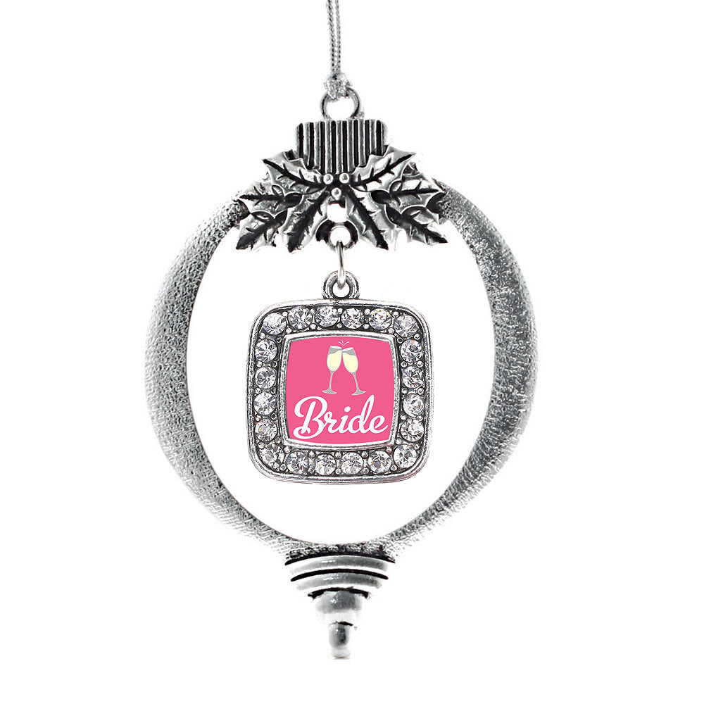 Our sparkling holiday ornament, equipped with a stylish silver rope and the Bride To Be square charm, is crafted from white metal with a silver plated finish and accented with cubic zirconia stones.