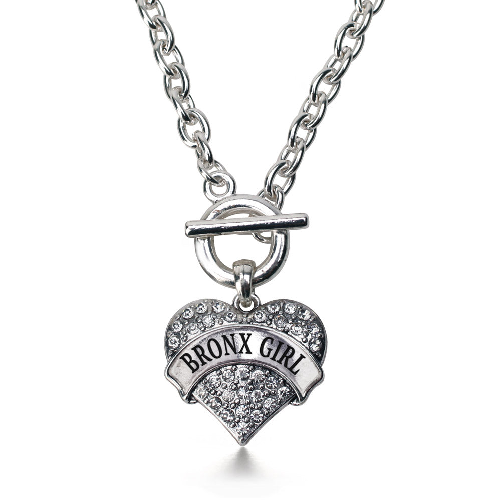 Silver Bronx Girl Pave Heart Charm Toggle Necklace