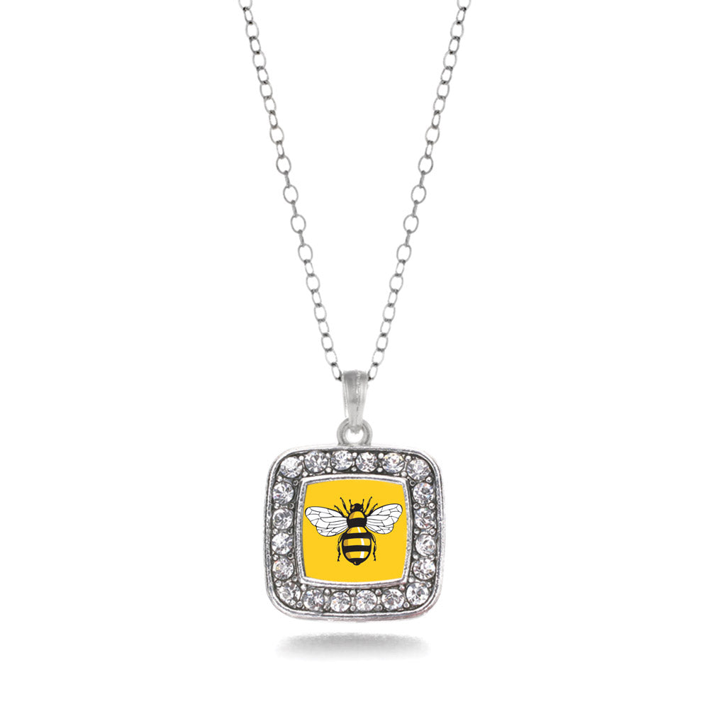 Silver Buzzing Bee Square Charm Classic Necklace