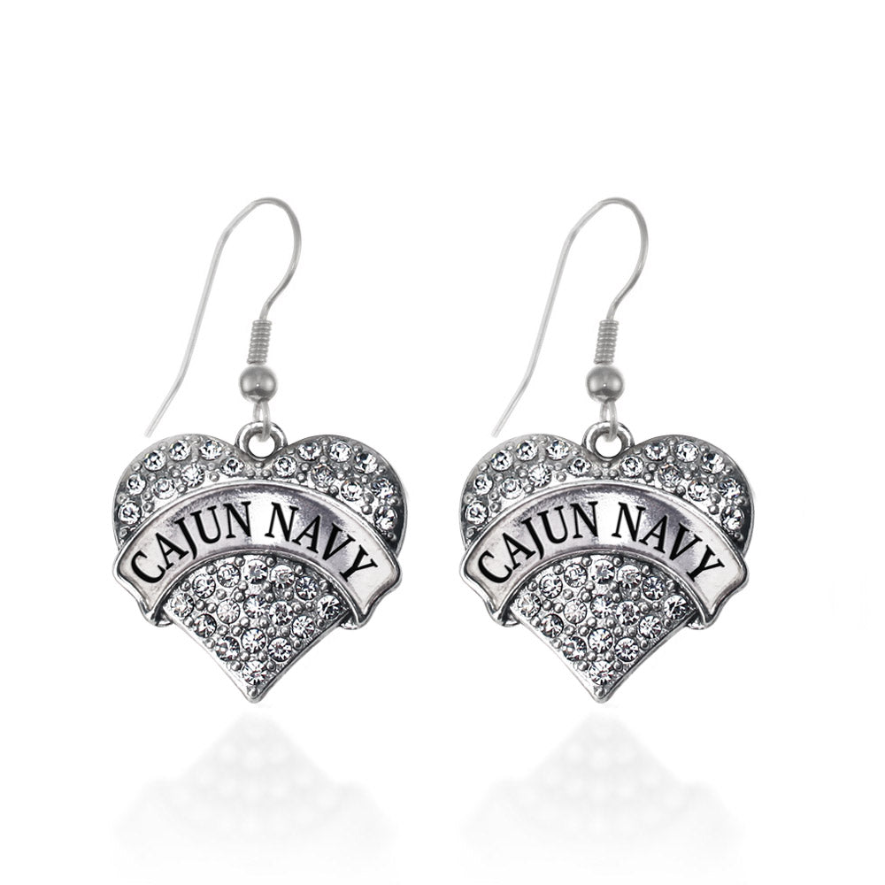 Silver Cajun Navy Pave Heart Charm Dangle Earrings