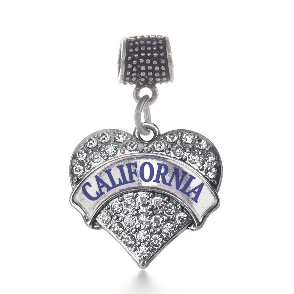 Our sparkling memory charm, equipped with a stylish charm attachment ring and the California pave heart charm, is crafted from white metal with a silver plated finish and accented with cubic zirconia stones.
