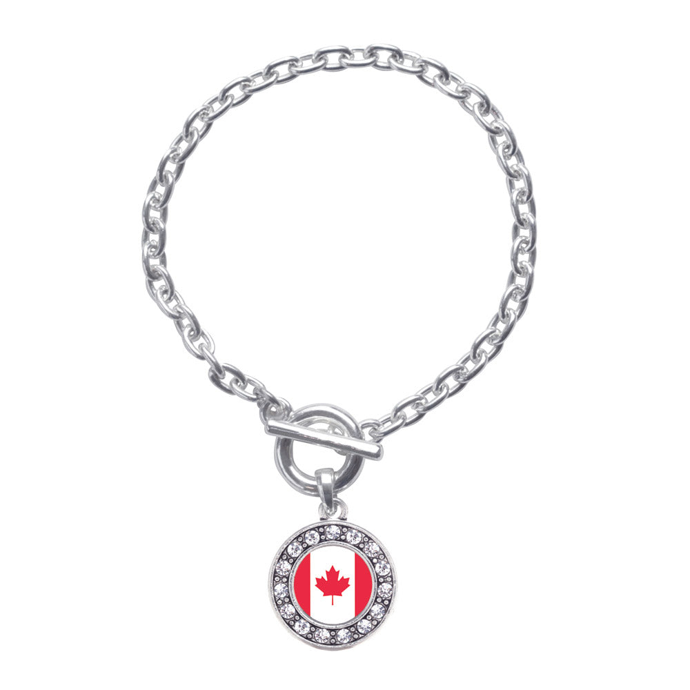 Silver Canadian Flag Circle Charm Toggle Bracelet