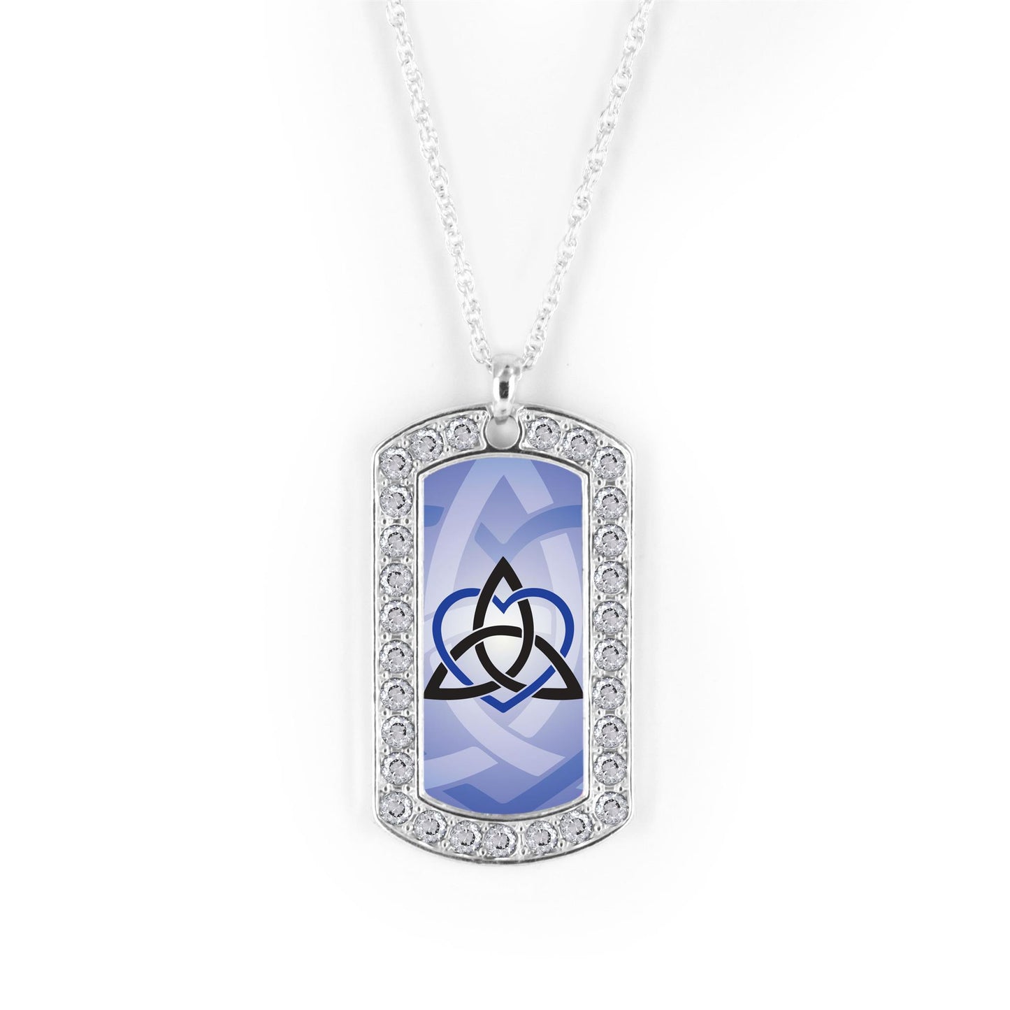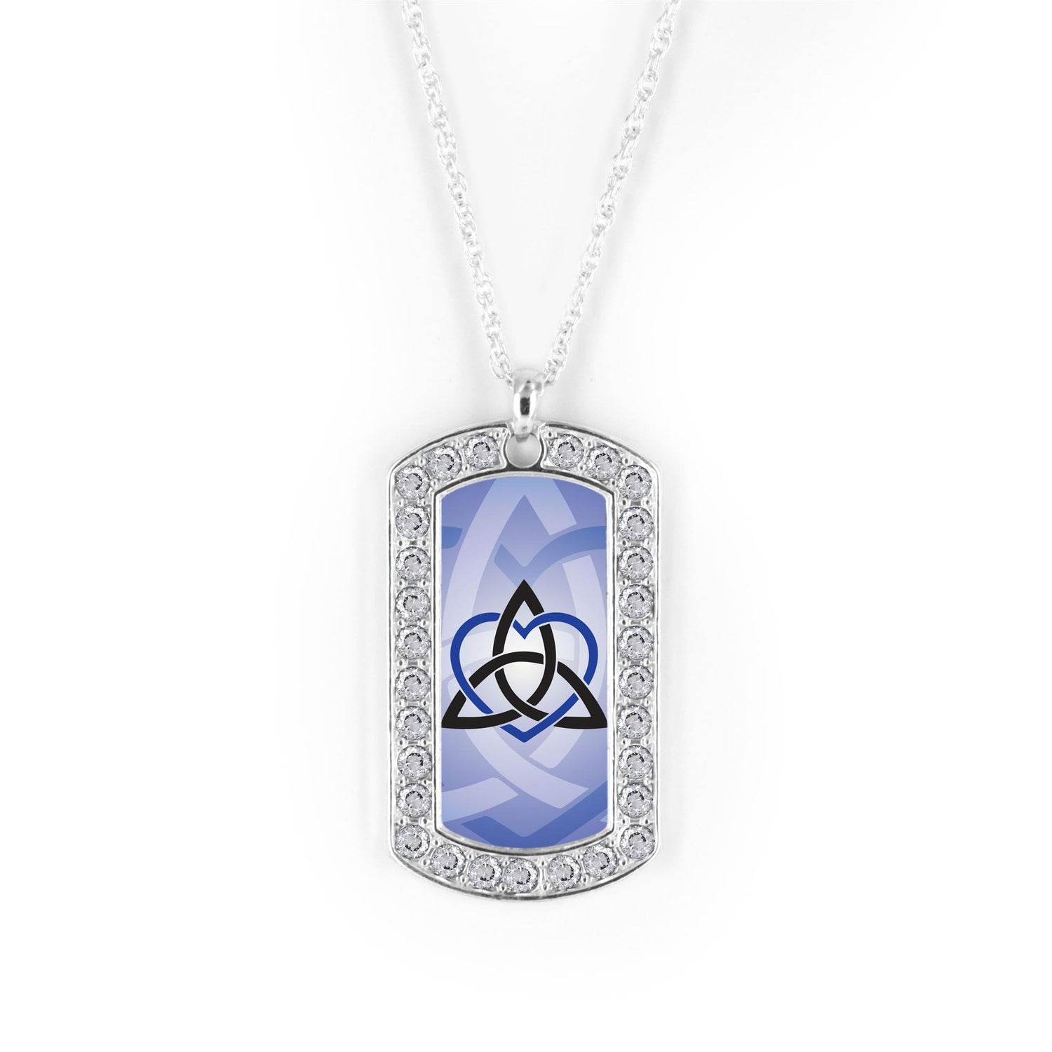Silver Celtic Sister Blue Dog Tag Charm Classic Necklace
