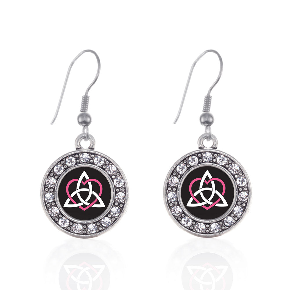 Our sparkling dangle earrings, equipped with a stylish french hook backing and the Celtic Sisters Knot circle charm, is crafted from white metal with a silver plated finish and accented with cubic zirconia stones.