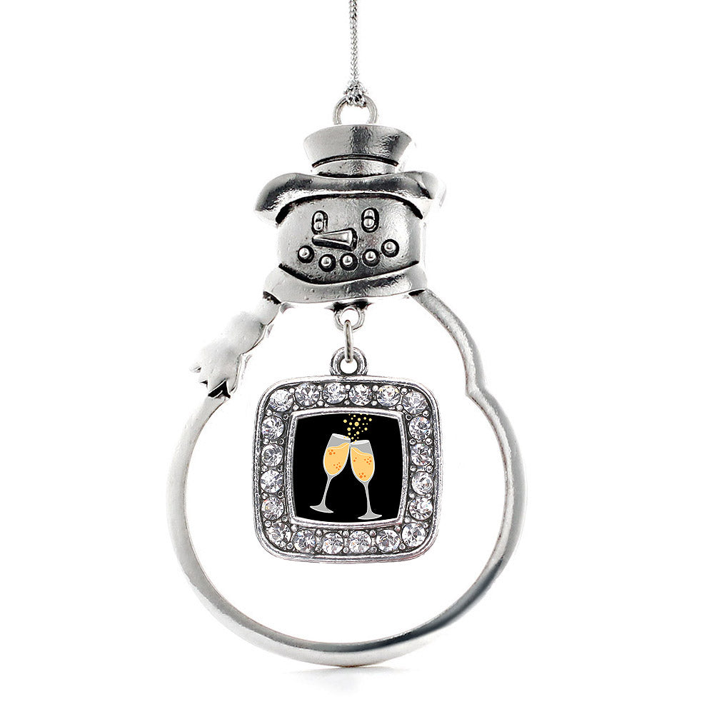 Silver Champagne Cheers Square Charm Snowman Ornament