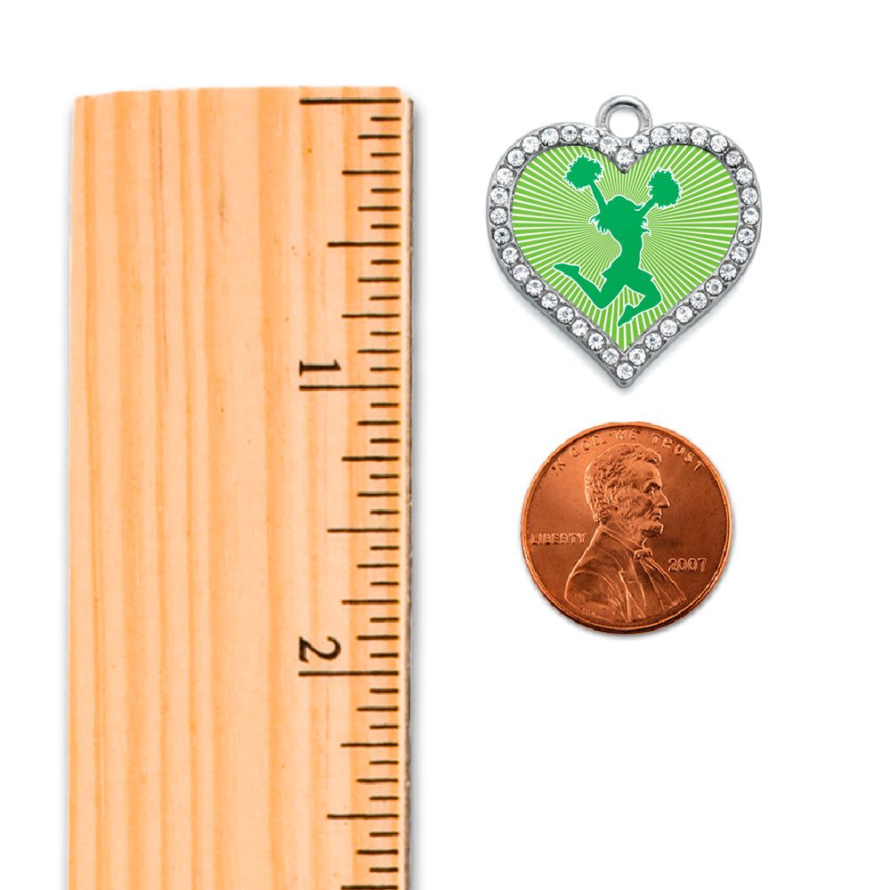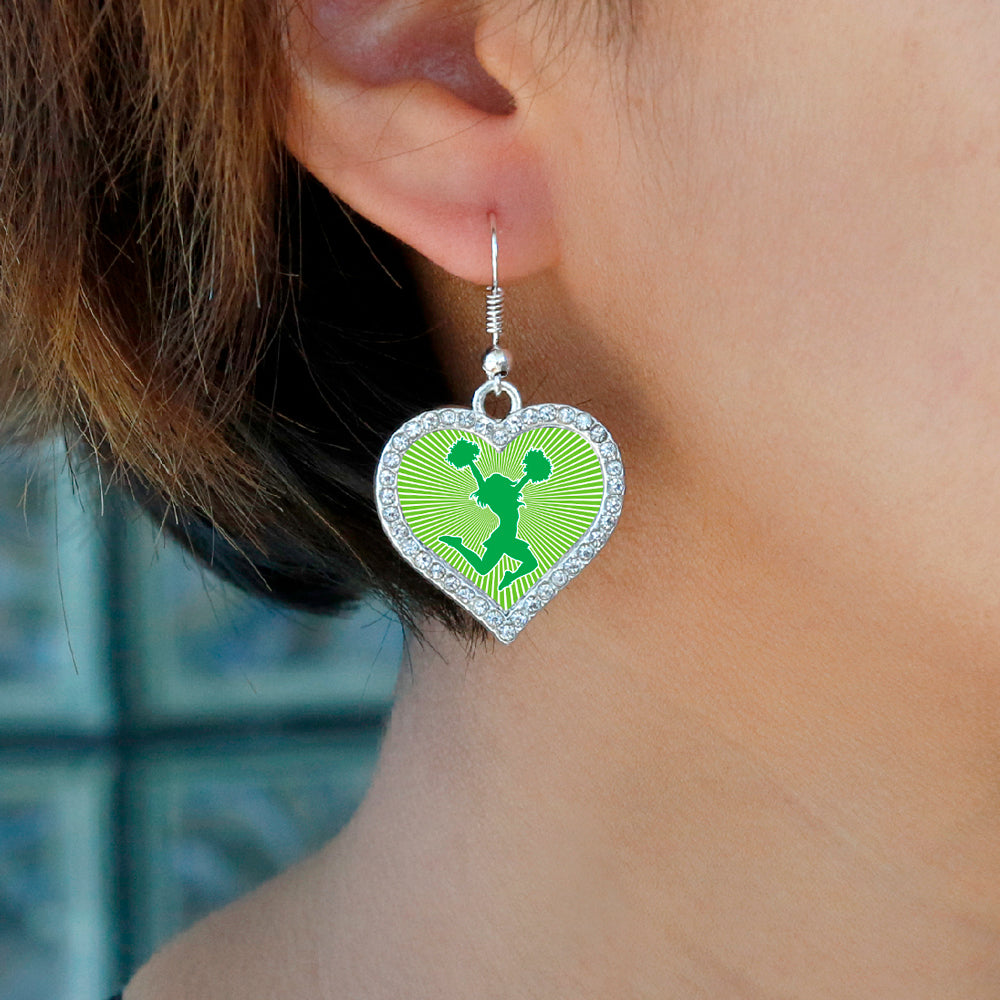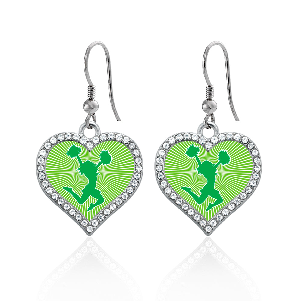 Silver Cheerleader - Green Open Heart Charm Dangle Earrings