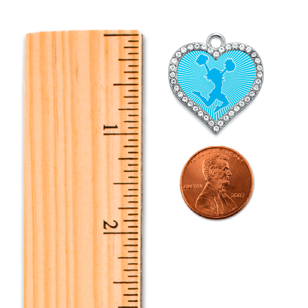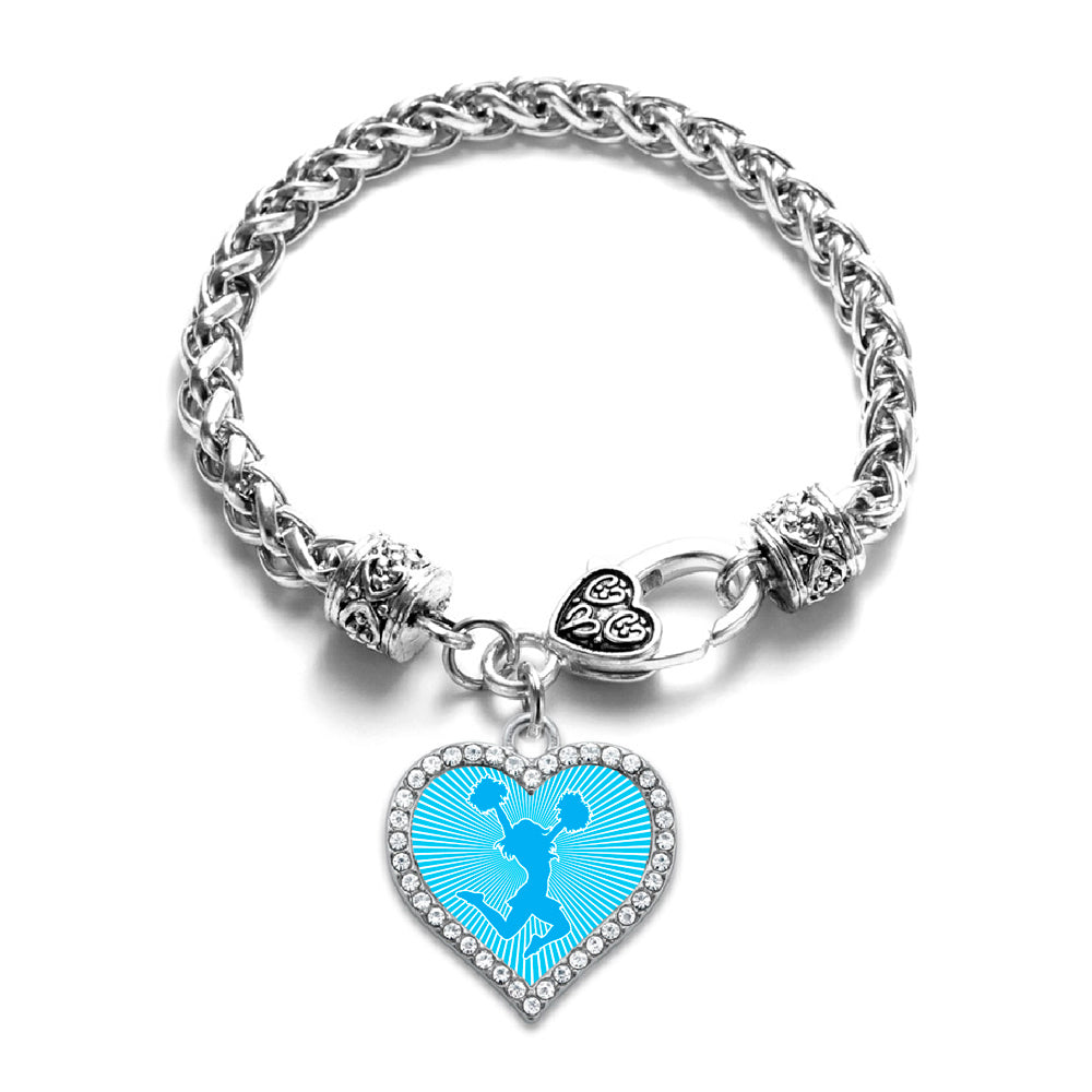 Our sparkling braided bracelet, equipped with a stylish lobster claw clasp and the Cheerleader - Light Blue open heart charm, is crafted from white metal with a silver plated finish and accented with cubic zirconia stones.
