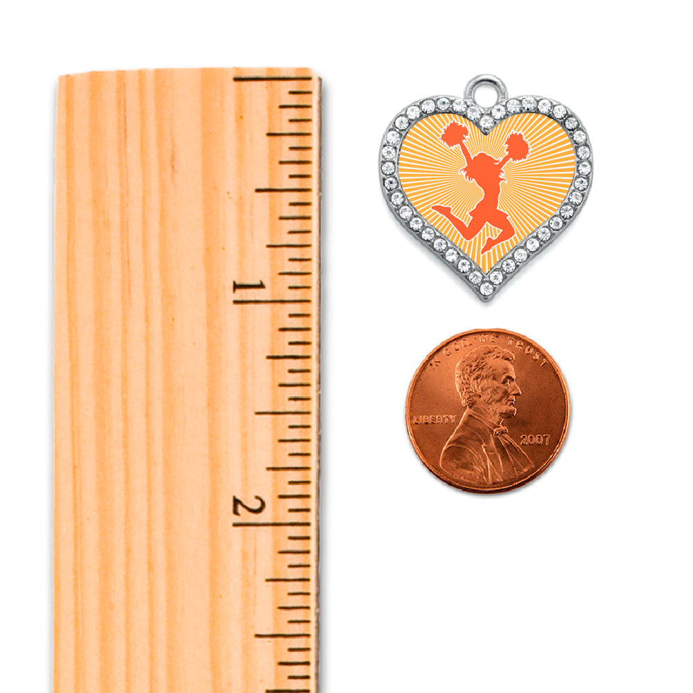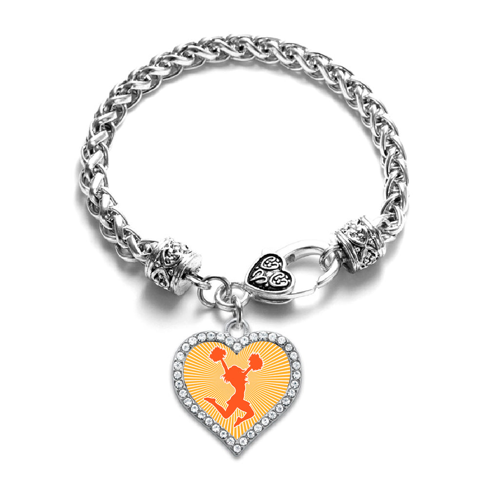 Silver Cheerleader - Orange Open Heart Charm Braided Bracelet