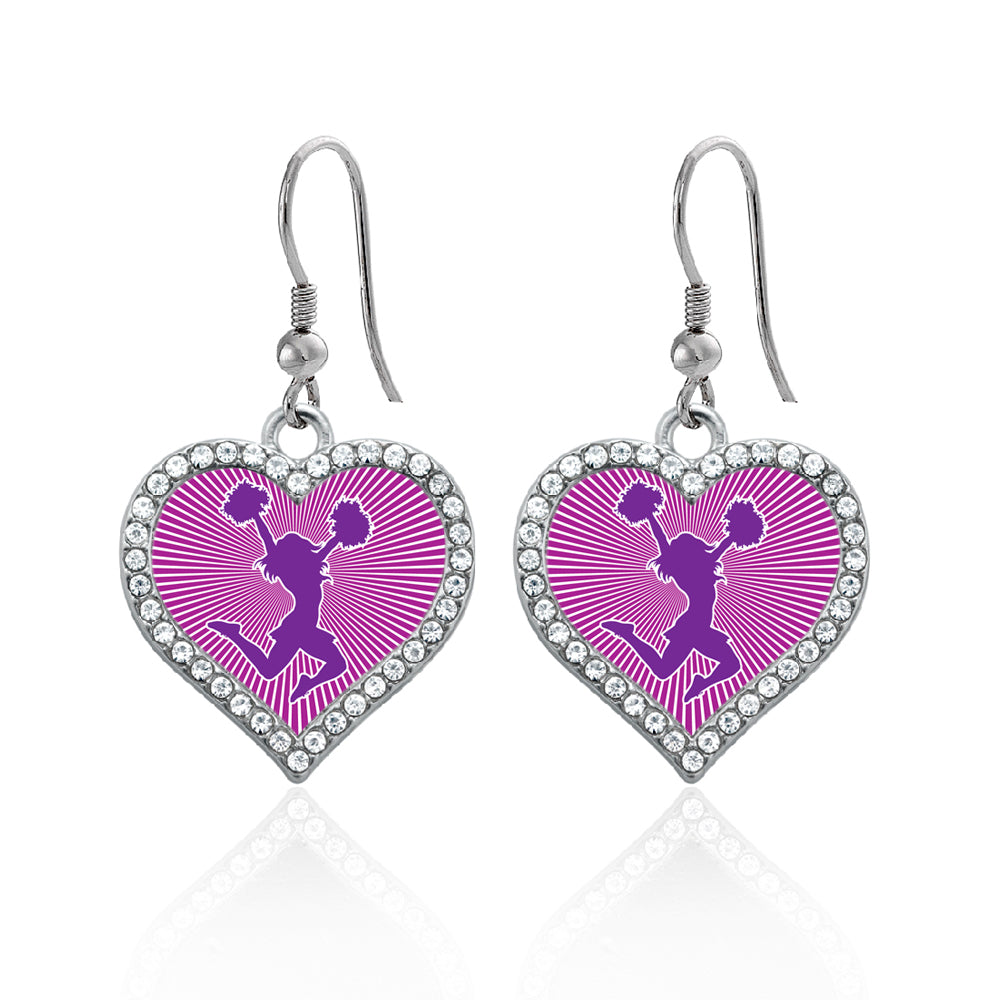 Our sparkling dangle earrings, equipped with a stylish french hook backing and the Cheerleader - Purple open heart charm, is crafted from white metal with a silver plated finish and accented with cubic zirconia stones.